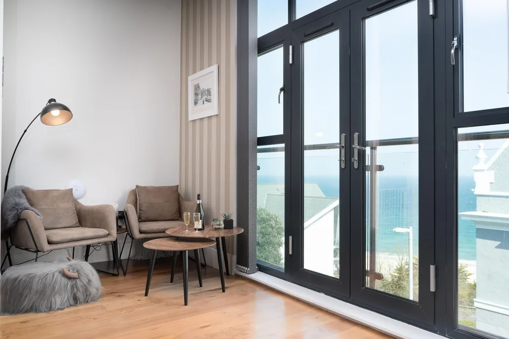 Boutique hotel quality and with spectacular sea views across Porthminster beach and St Ives Bay, Jack’s Corner is a reverse level holiday home set over two floors with two beautifully presented ensuite bedrooms, a private decked courtyard and Juliet balconies. Only a short walk to the centre of St Ives’ harbour, golden sandy beaches, galleries, restaurants, and shops, Jack’s Corner also benefits from an allocated parking space.