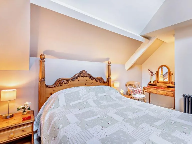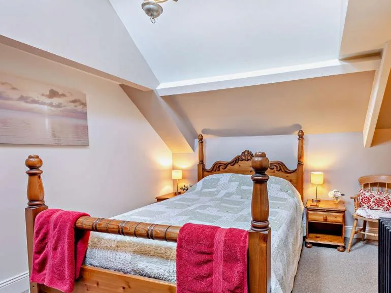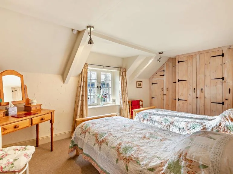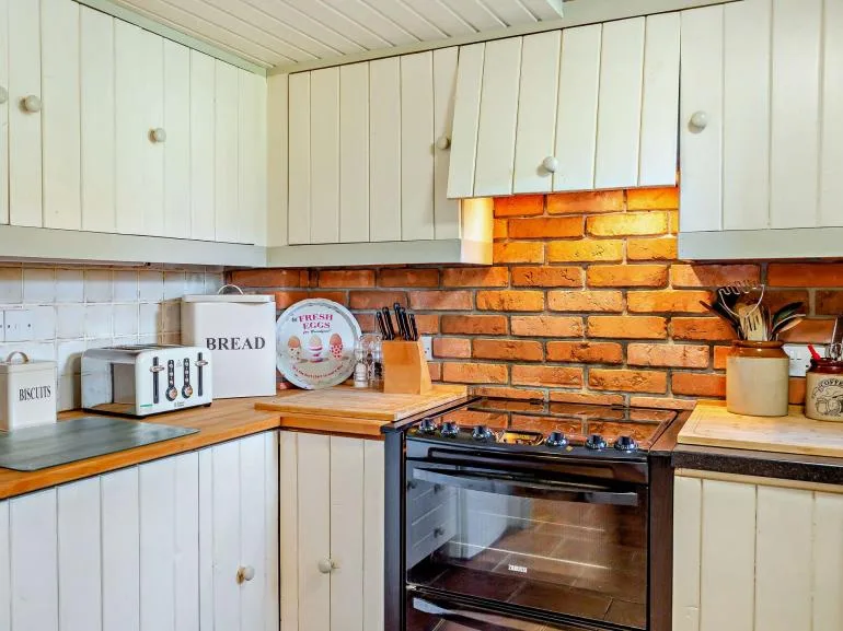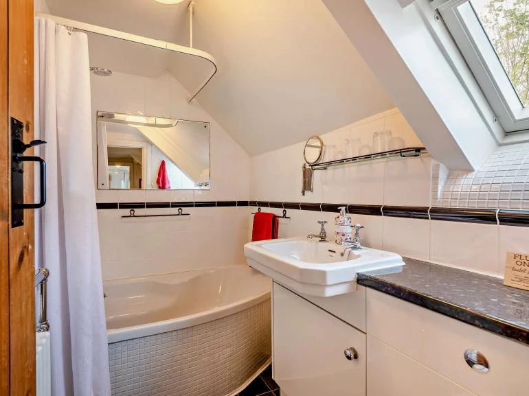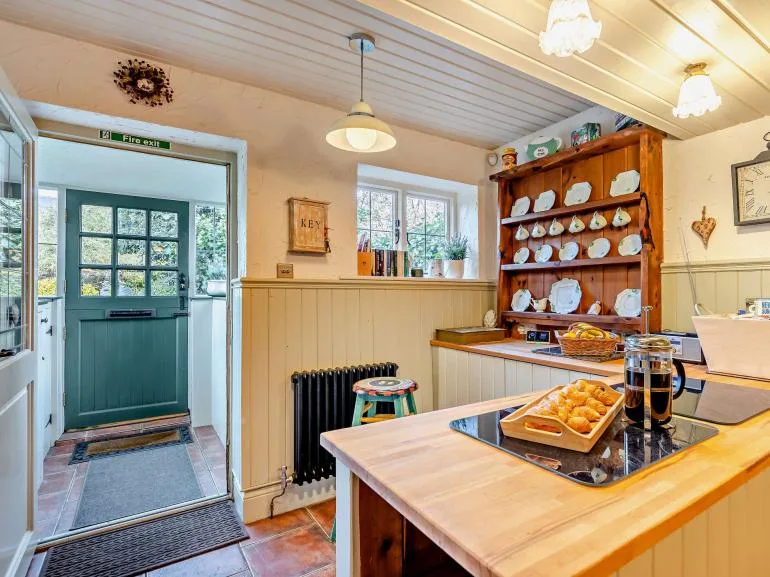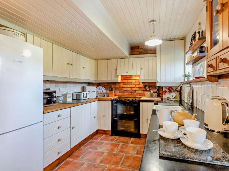 Inside the cottage, you’ll find a warm and elegant lounge with a feature fireplace, wood burner, comfortable seating, and TV – perfect for cosy evenings in. There’s also a spacious dining area, a fully equipped kitchen with modern appliances, and a bright sunroom overlooking the tranquil garden. Upstairs offers three welcoming bedrooms – a double, a twin, and a bunk room – plus a family bathroom and a separate shower room.