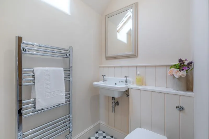 Upstairs are three beautifully presented bedrooms, including two super-king-size rooms, one with a sleigh bed and en-suite shower room, and the other enjoying lovely views and original stone steps. A twin bedroom and family bathroom complete the accommodation.