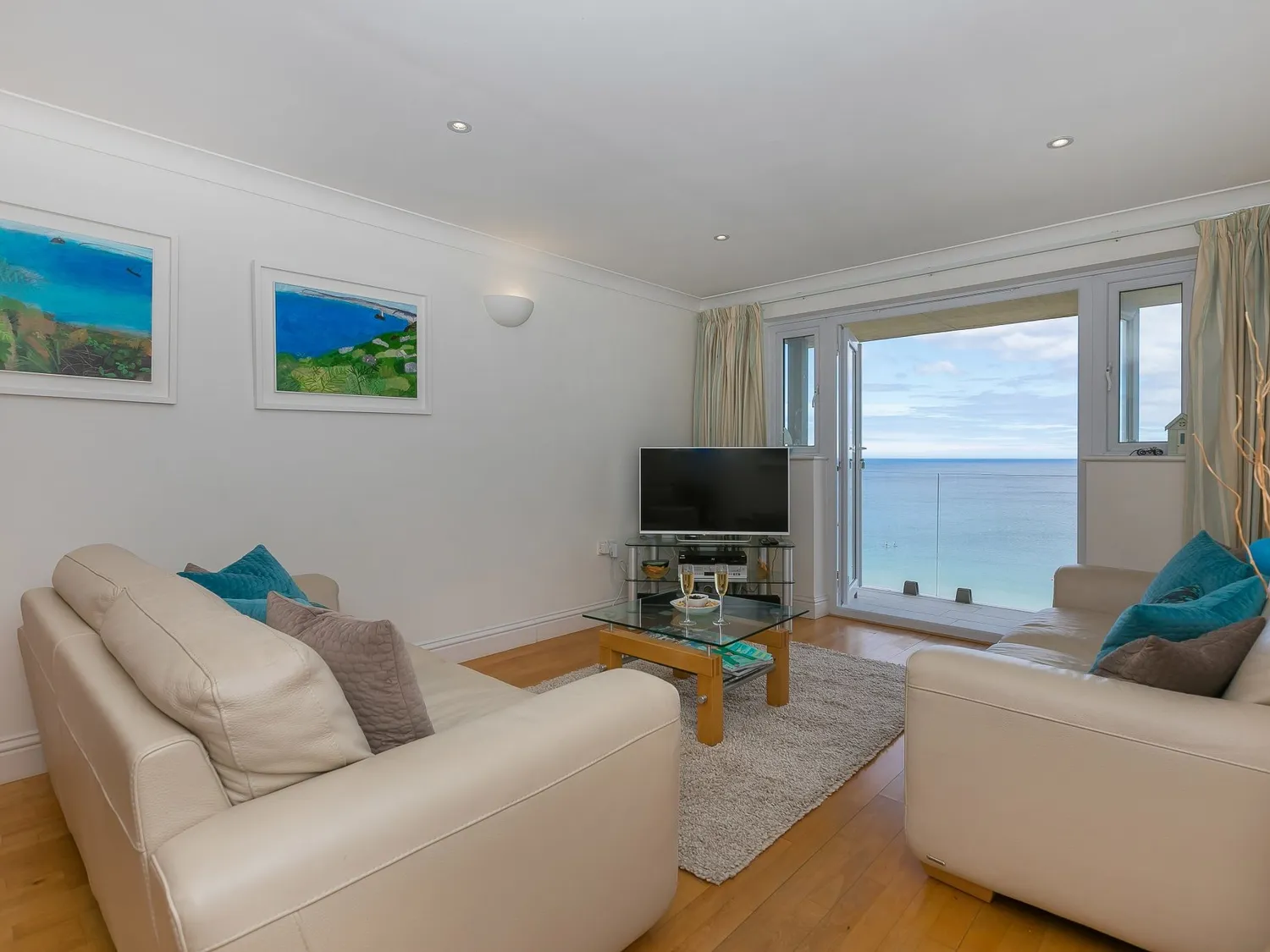 The balcony is directly above the communal garden from which a path leads down to the beach by a private gate, you can also access the South West coastal path.