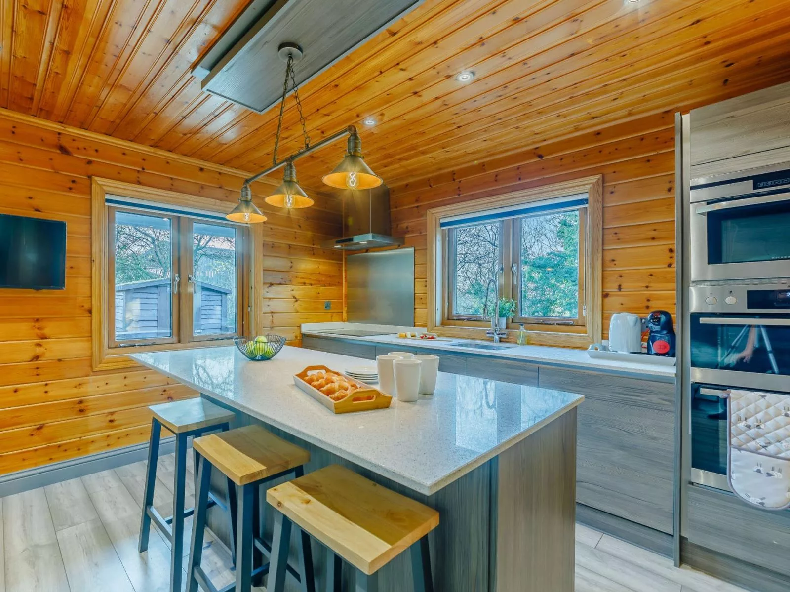 Outside, the decking sweeps around the lodge to the private hot tub with nearby outdoor seating – a fantastic place to enjoy the summer nights with loved ones and dine alfresco. There is also a special place where your four-legged friend can enjoy their own space in the ‘doghouse’.