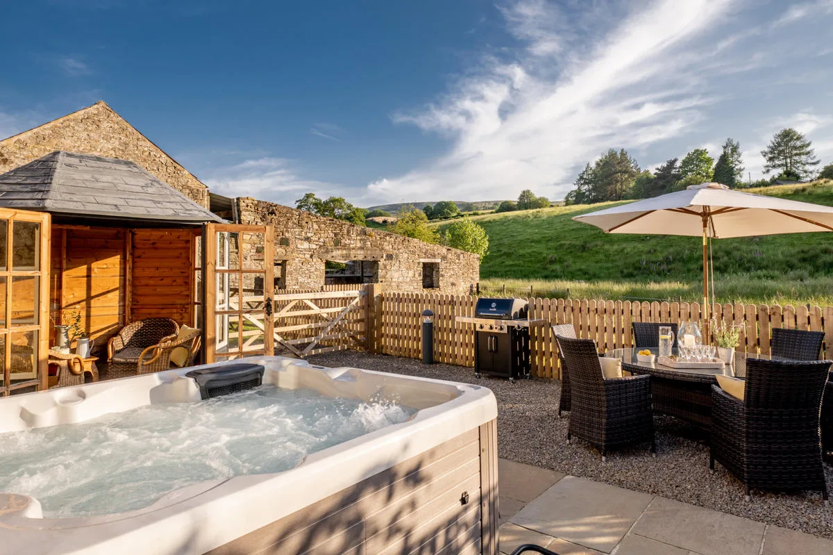 The enclosed garden and patio areas of the Barn and Stable offer a relaxing hot tub , lovely garden furniture and Chargrill gas BBQ.. There is also a large parking area, bike storage and summer house.