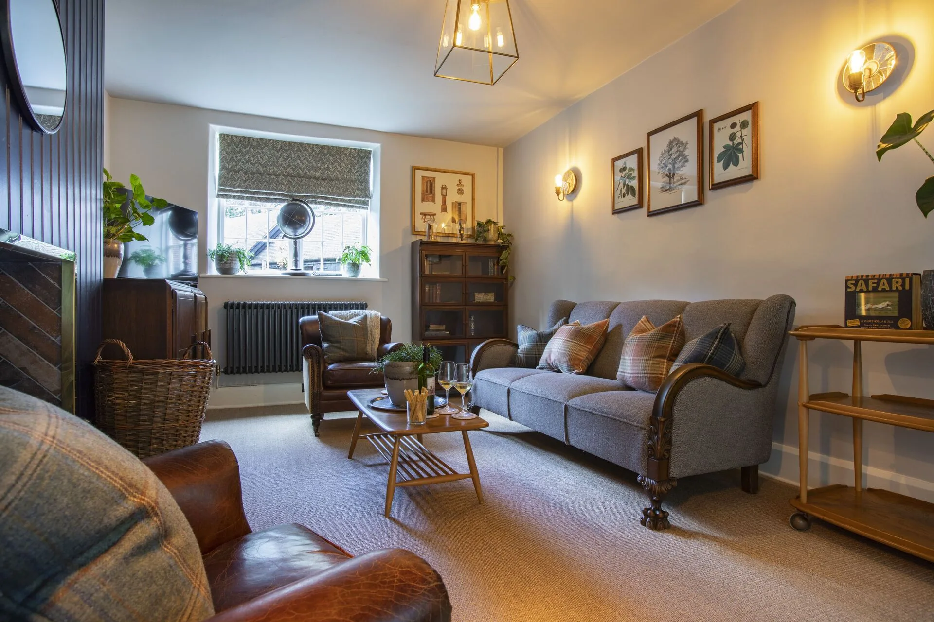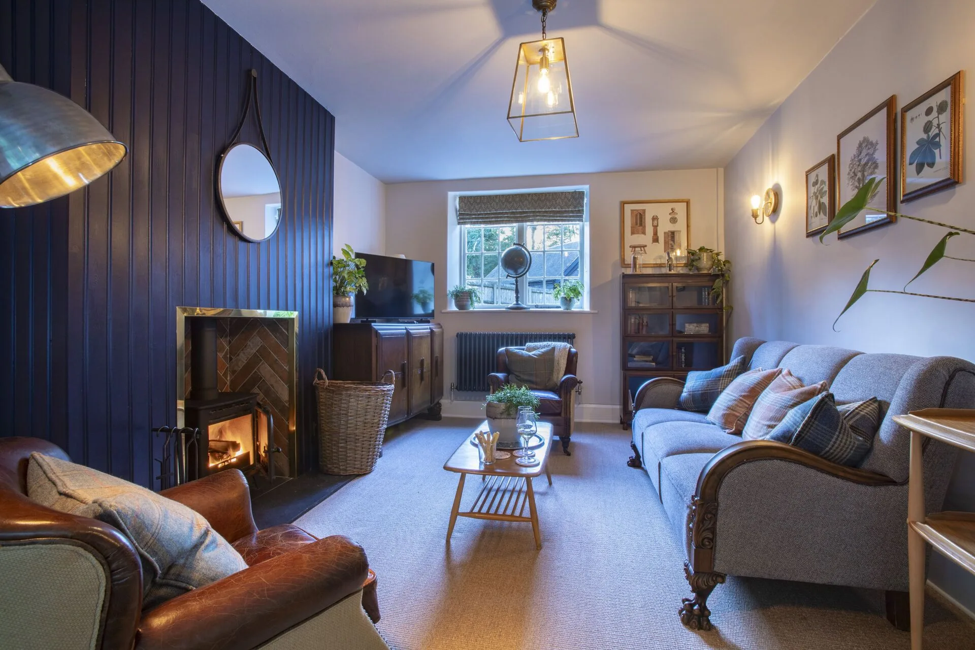 Inside, the atmosphere is one of relaxed country elegance. The cosy sitting room, dressed in heritage décor and bathed in soft light, is anchored by a traditional wood-burning stove—the ideal spot to curl up with a book or a glass of wine after a day exploring the estate. The country-style kitchen combines rustic charm with practical design, featuring modern appliances, a sociable island, and a welcoming dining table for four. Whether you’re preparing a leisurely breakfast before a morning walk or cooking up a hearty evening meal, the space is perfectly suited to both everyday comfort and special moments shared with loved ones.