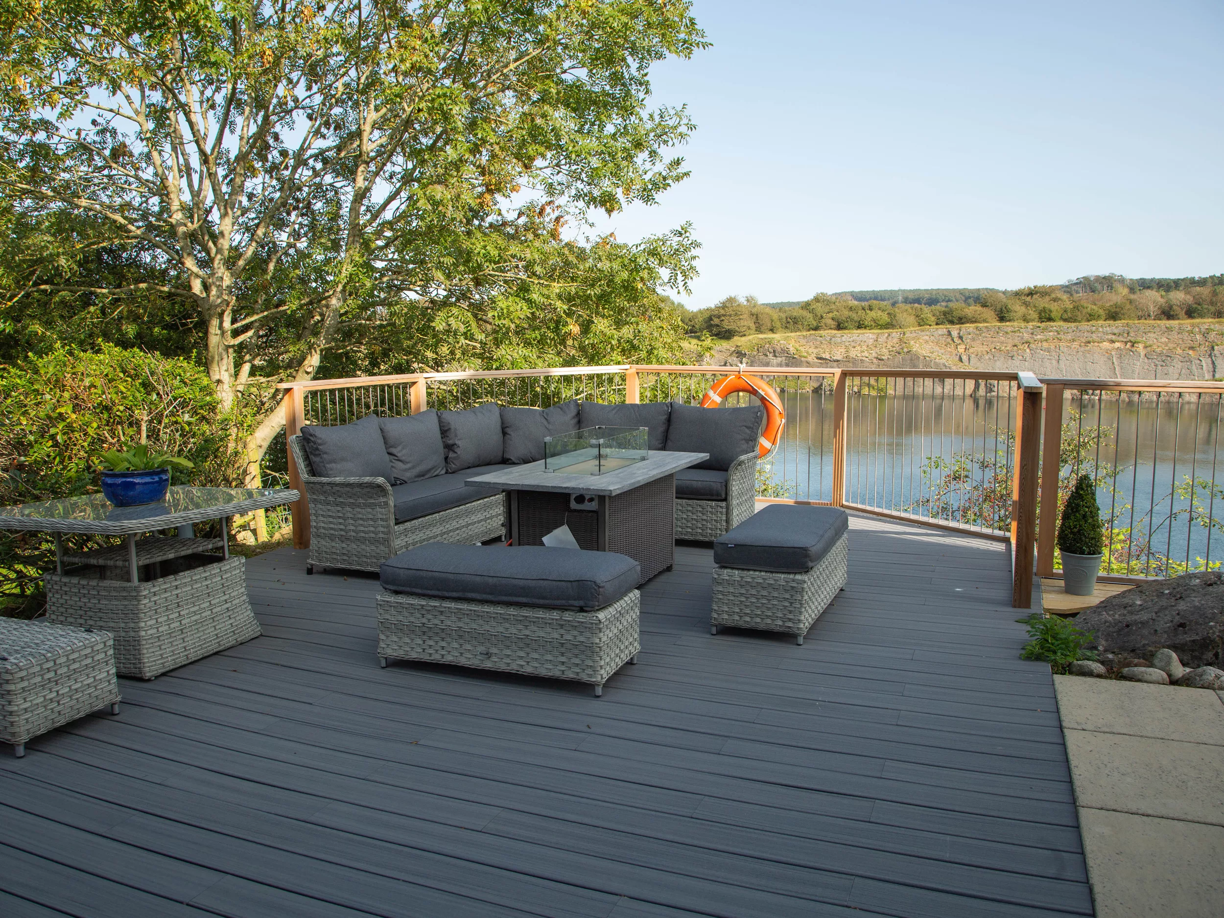 To the rear of the property is a large patio area with a side lawn and veranda; from the patio you can truly benefit from the breath-taking views across Jackdaw Quarry, enjoying alfresco dining or taking in the wildlife and natural beauty of the area from the seating area with a gas powered fire pit table. You can also take full advantage of the lake, as open water swimming is included in your stay during the dive centre opening hours! The local area is extremely idyllic, with plenty of opportunities for walking, cycling and soaking up your scenery. Take a short drive to discover the inviting market town of Kirkby Lonsdale, offering all the essentials for your stay here you can find a good selection of shops and welcoming eateries where you can indulge in a delicious meal after a day of exploration, all while being surrounded by the wonder of the Lune Valley, offering you easy access to both the Yorkshire Dales and the Lake District, each boasting their own diverse landscapes and outdoor adventure.