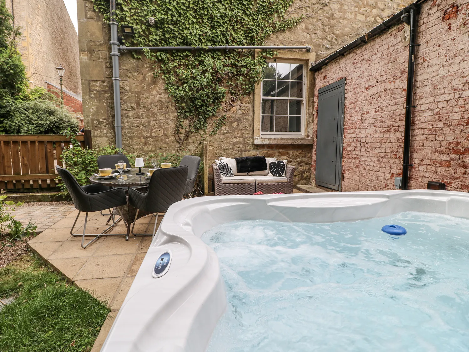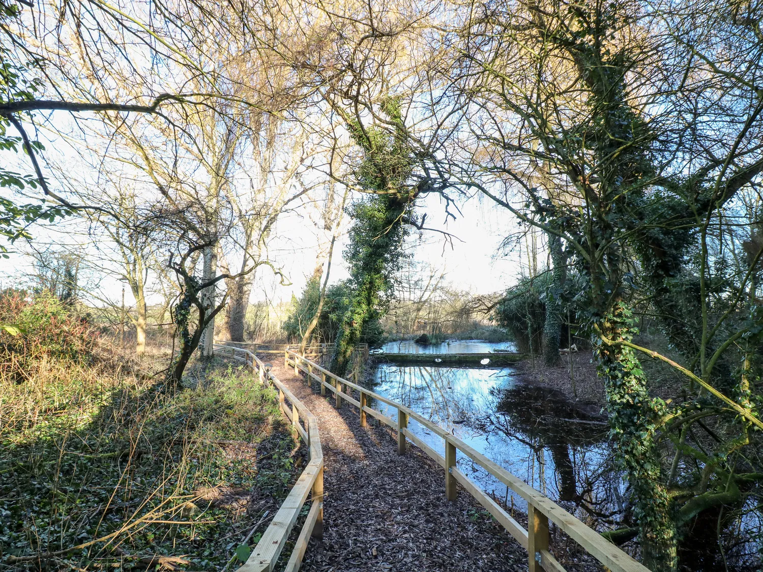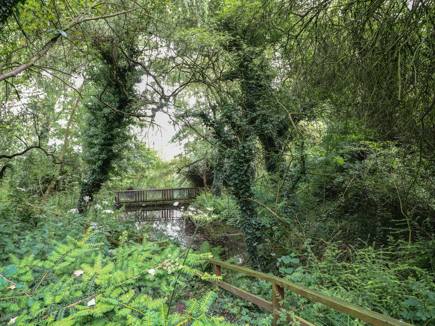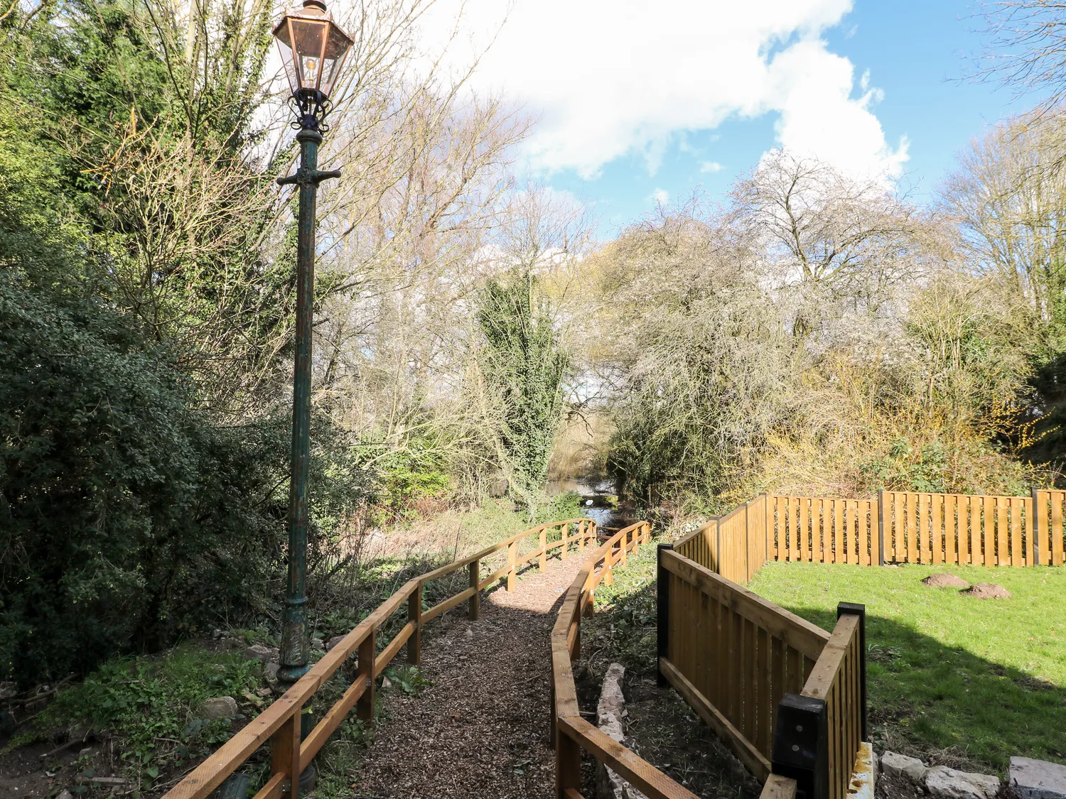 As the evening unfolds, take a peaceful stroll around the picturesque shared garden, which wraps around natural ponds and is softly lit by Victorian cast iron lamp-posts with copper tops—a romantic and atmospheric setting that reflects beautifully across the still waters. The cast-panelled bridge over the mill stream, lit at night, is especially enchanting.