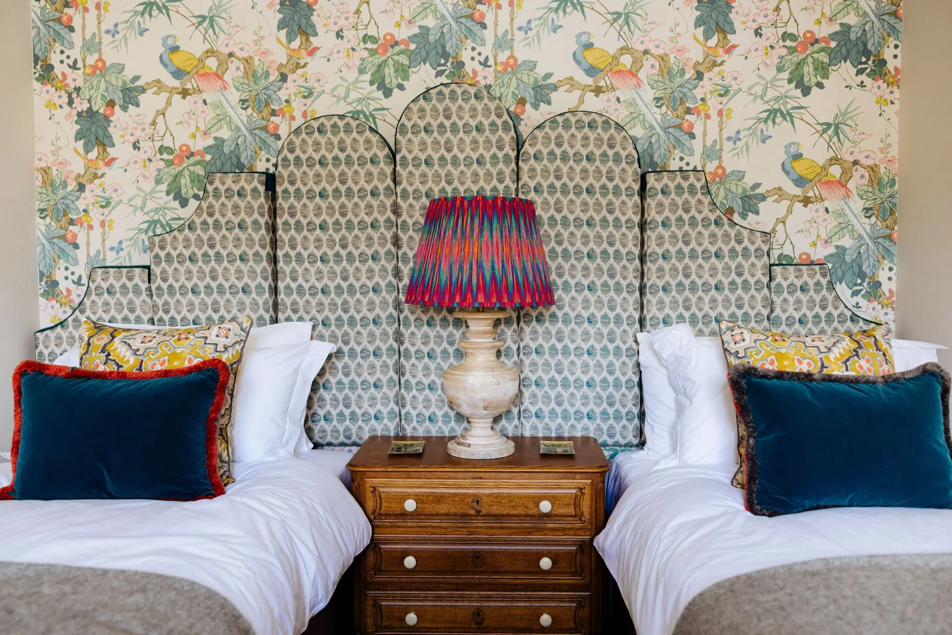 A characterful winding staircase connects each floor, complemented by tasteful décor and subtle touches reflecting the estate’s rich history. On the first floor, the elegant master bedroom features a 6’ super-king-size zip-and-link bed and views over the private garden. The family bathroom includes a bath with an overhead shower. A further flight of stairs leads to the second bedroom with twin 3’ single beds.