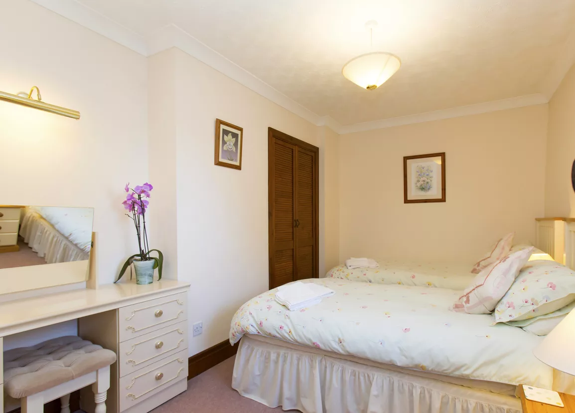 First floor – One double bedroom; one twin bedroom; bathroom with w.c., hand basin and bath with shower.