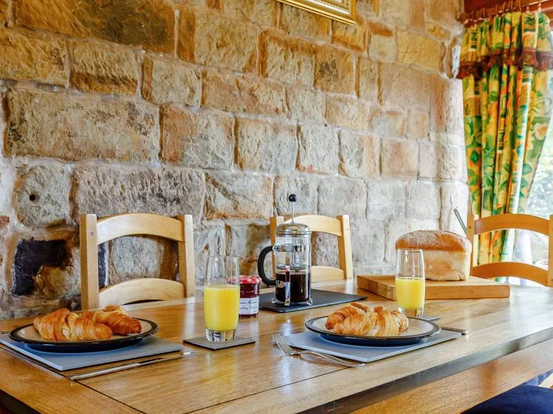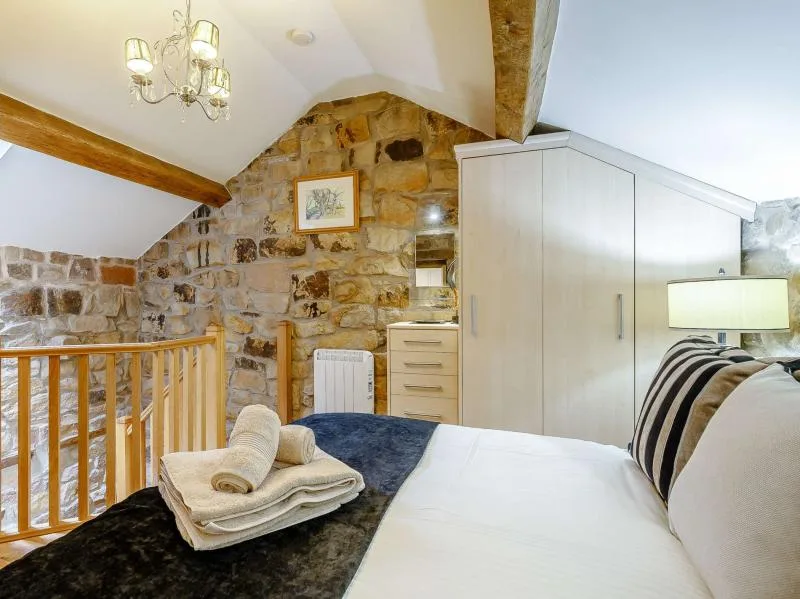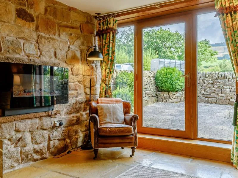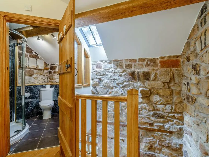 Inside, the cottage features a well-equipped kitchen/diner with modern appliances and floor-to-ceiling windows showcasing the countryside views. The cosy lounge provides a welcoming space to relax after a day exploring. Upstairs, a beautiful super-king-size bedroom with exposed stone walls and beams offers character and comfort, complete with an en-suite shower room.
