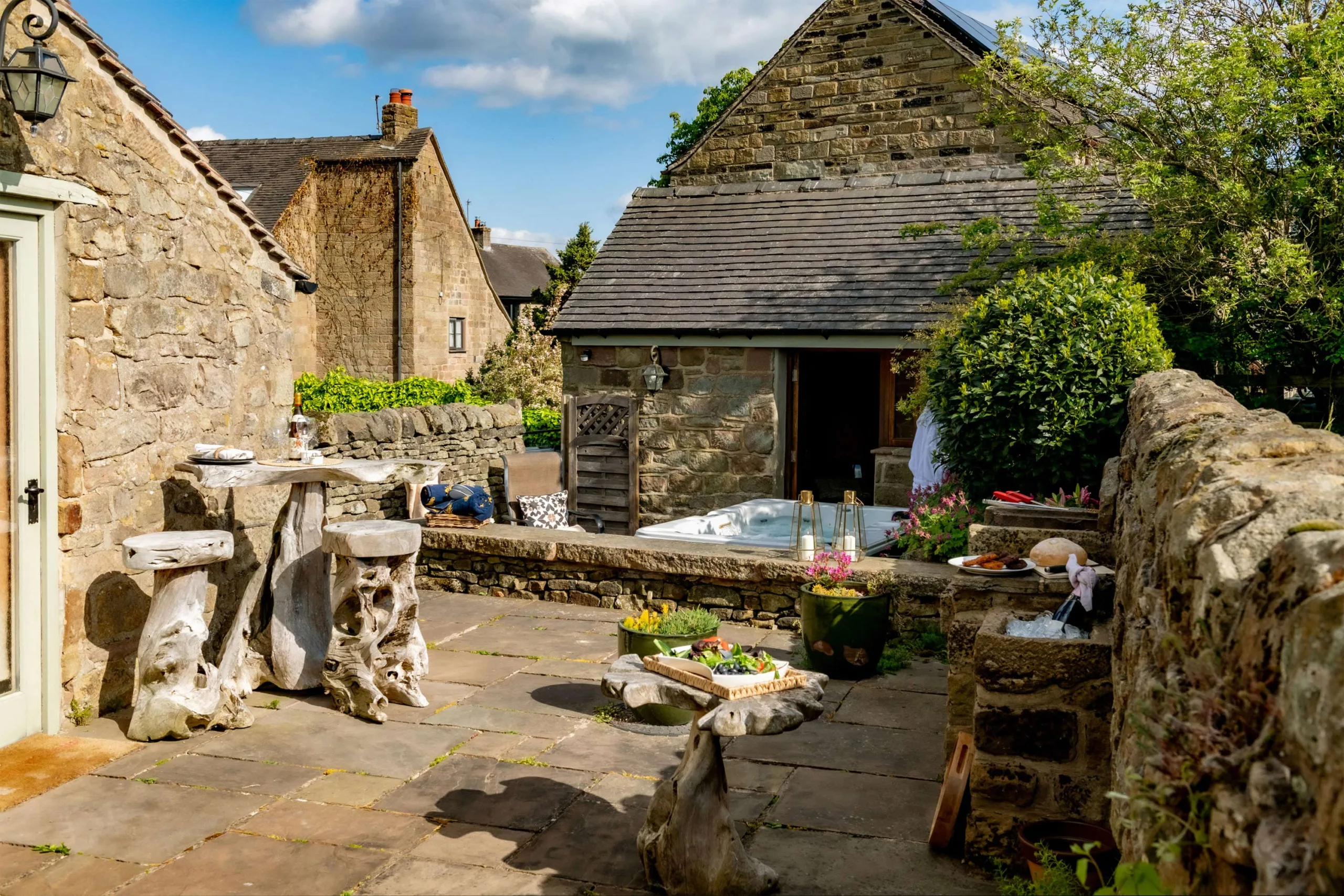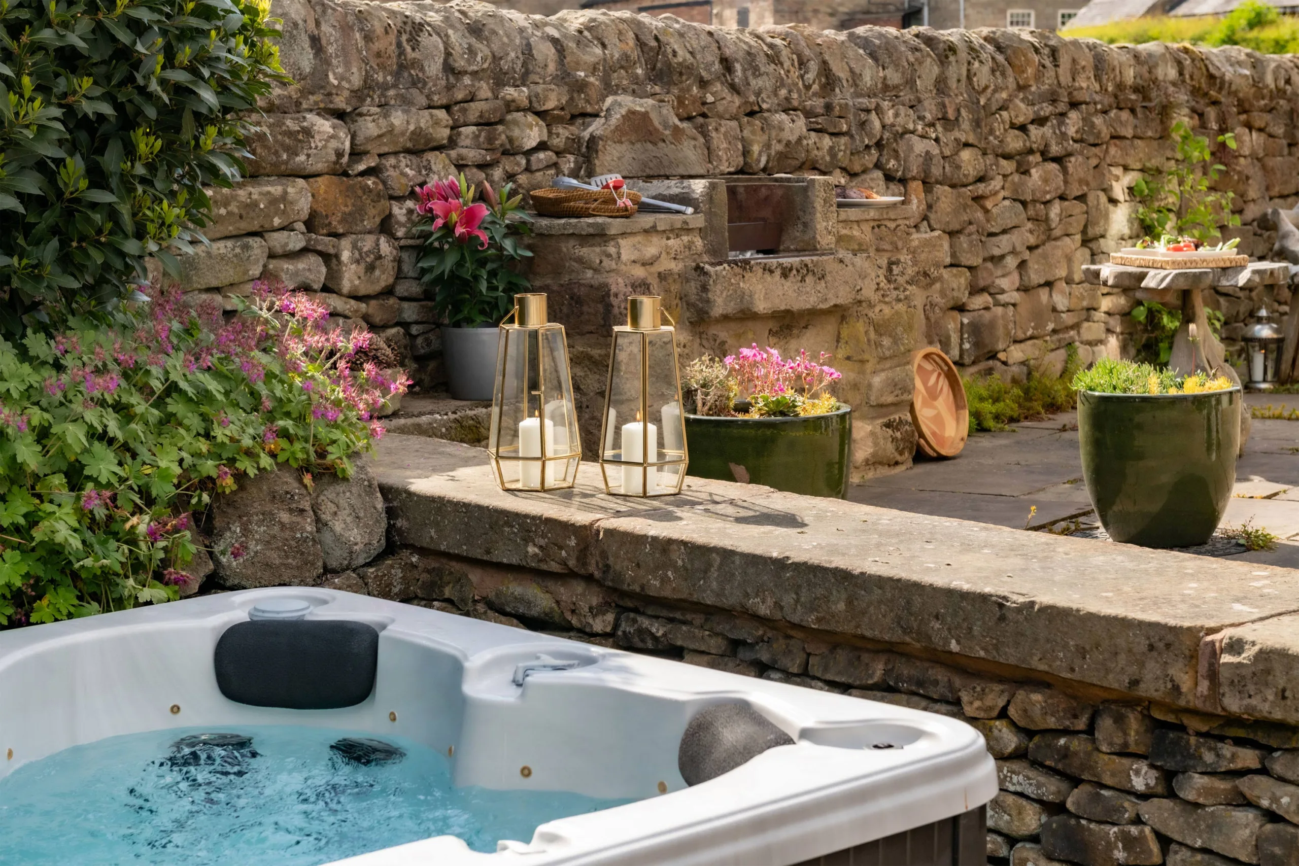 Heather Cottage offers guests a charming and romantic retreat. Perfect for re-charging the batteries! Complete with private hot-tub, hand made super king size bed, exquisite artwork and atmospheric lighting, a stay at Heather Cottage will give you an indulgent and much needed escape from everyday life. Relax and watch village life unfold from the window of the beautiful master bedroom. Sample the hospitality and real ale in the famous Barley Mow Inn. Stretch out on the soft leather sofa in the cosy and intimate sitting room, light the candles for an intimate dinner a deux, or simply relax and sip Champagne under the stars in your own private, bubbling, hot-tub.