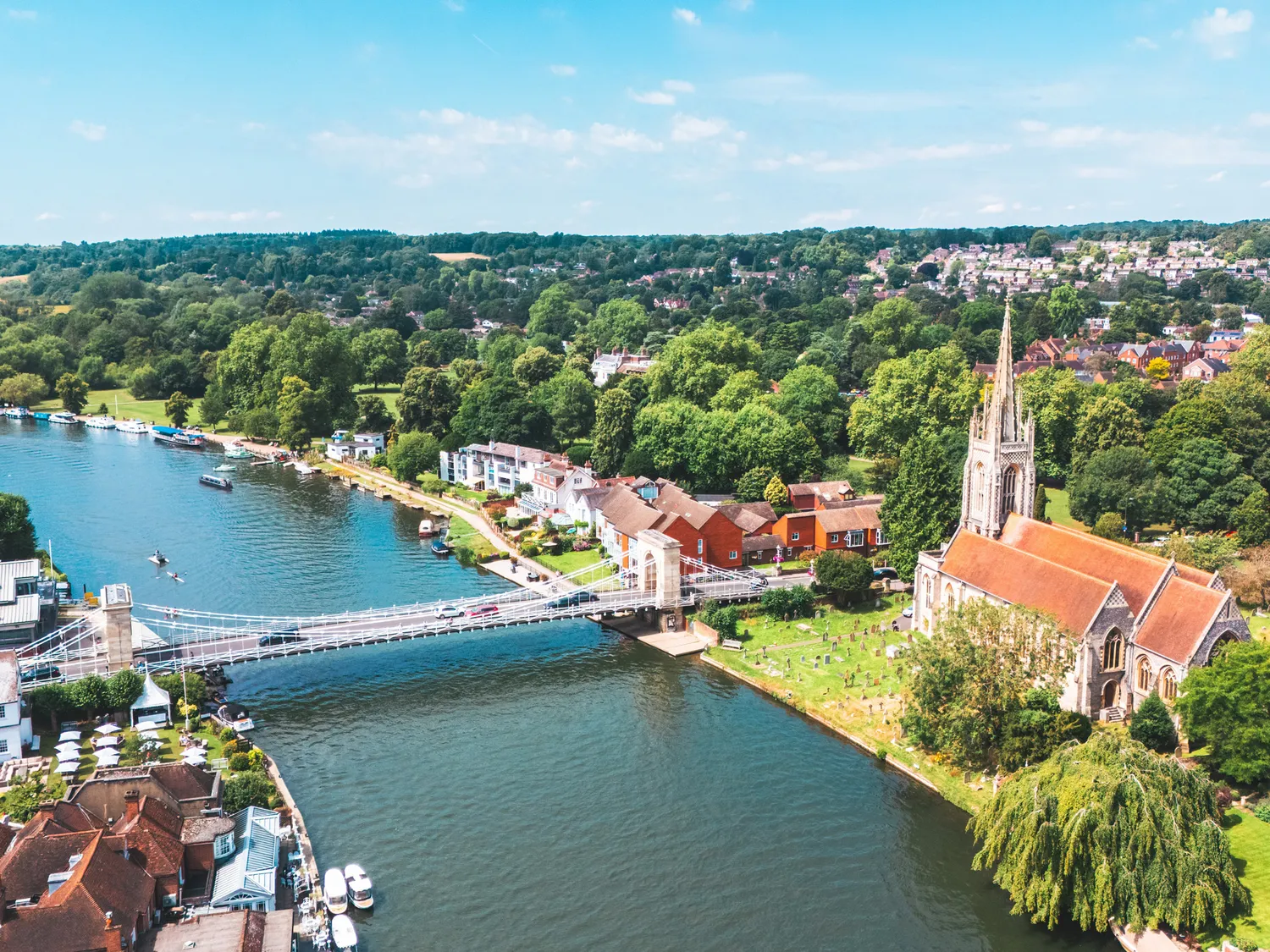 Higginson House is superbly situated on one of Marlow’s most prestigious roads. Marlow itself is a vibrant Georgian market town on the River Thames, with the Chiltern Hills Area of Outstanding Natural Beauty right on the doorstep. A short walk brings you to the picturesque town centre, riverside Higginson Park—gifted to the town by the estate on the General’s 100th birthday—and an array of boutique shops, restaurants and pubs, including Tom Kerridge’s renowned two-Michelin-star Hand & Flowers.