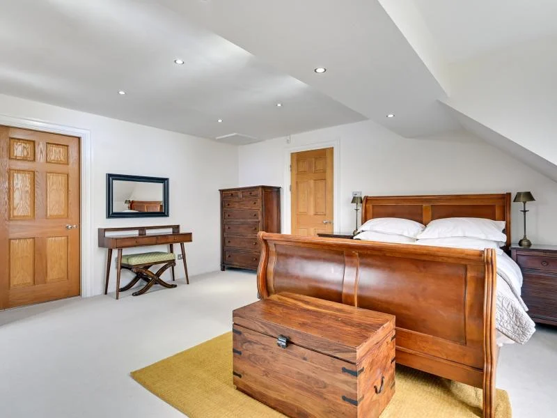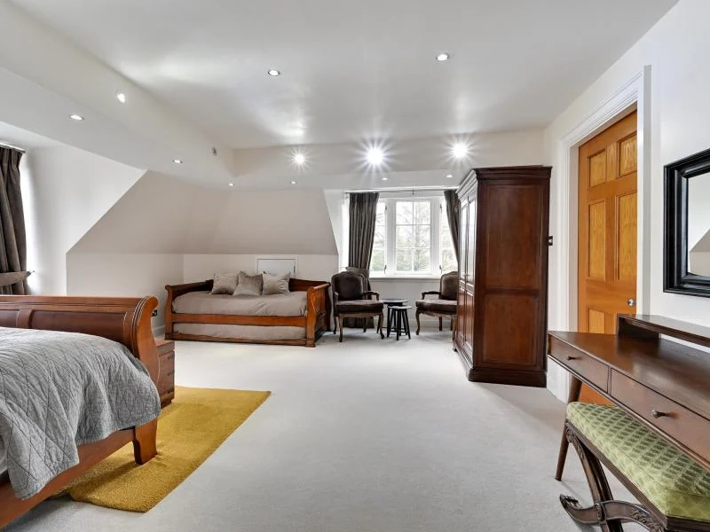 The property also boasts an indoor heated swimming pool with changing facilities. Outside, extensive landscaped grounds surround the house, featuring a sun terrace with BBQ area, large lawns, a children’s play area, a hard tennis court and abundant wildlife. The neighbouring wetlands are a designated Site of Special Scientific Interest, offering a truly special and tranquil setting.