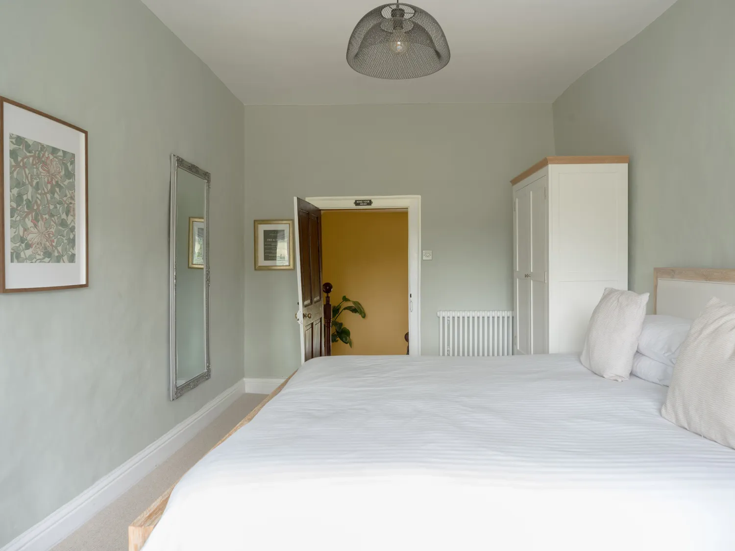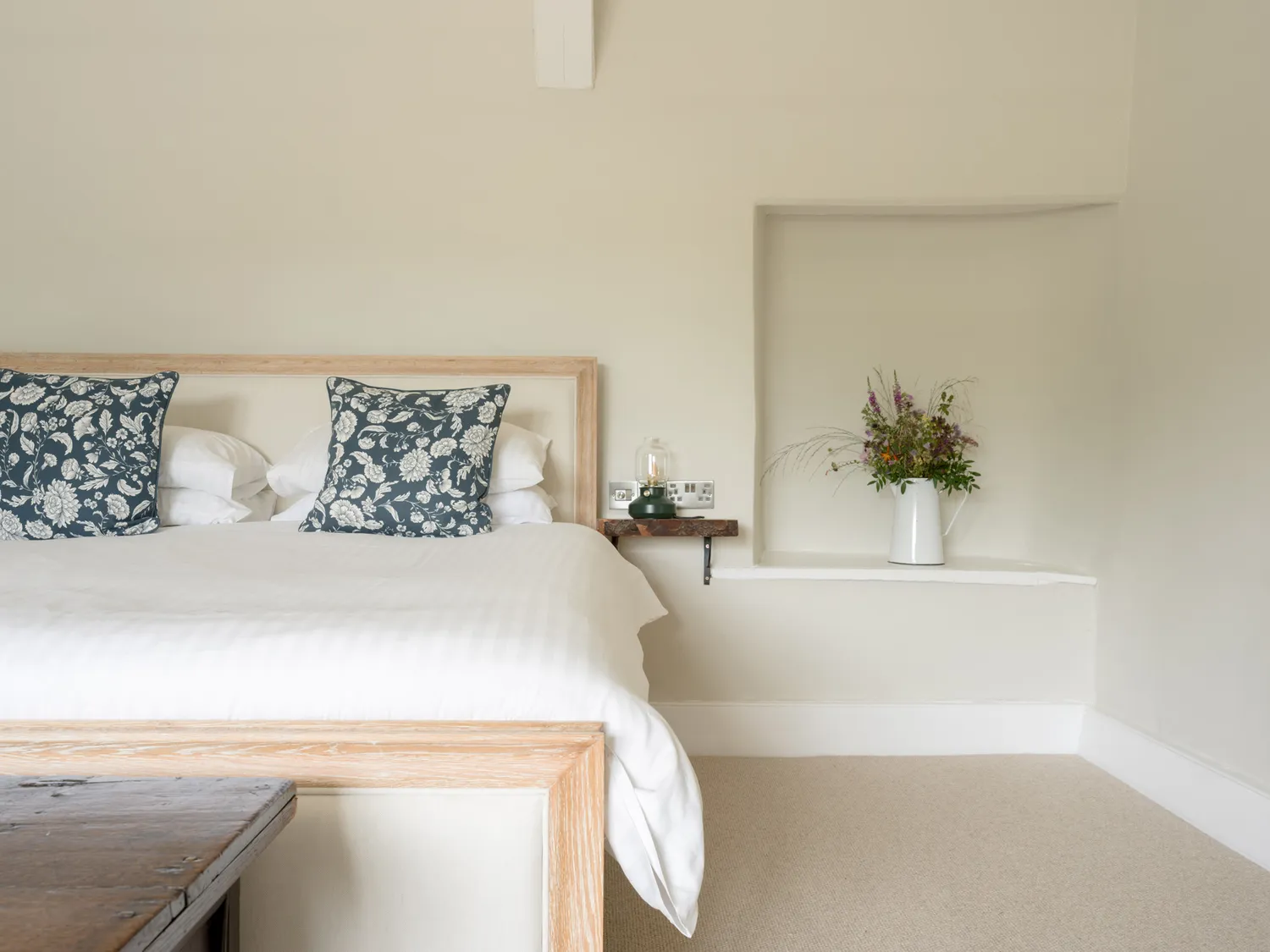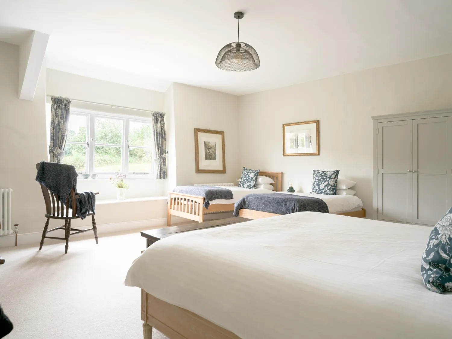The farmhouse sleeps guests across six well-appointed bedrooms. On the ground floor is a single room with en-suite shower. Upstairs, there is a super-king-size bedroom with en-suite walk-in shower, a further super-king, two family rooms each with a super-king and twin beds, and an additional family room with a super-king and single. Three additional bathrooms and a separate shower room ensure easy mornings for larger groups.