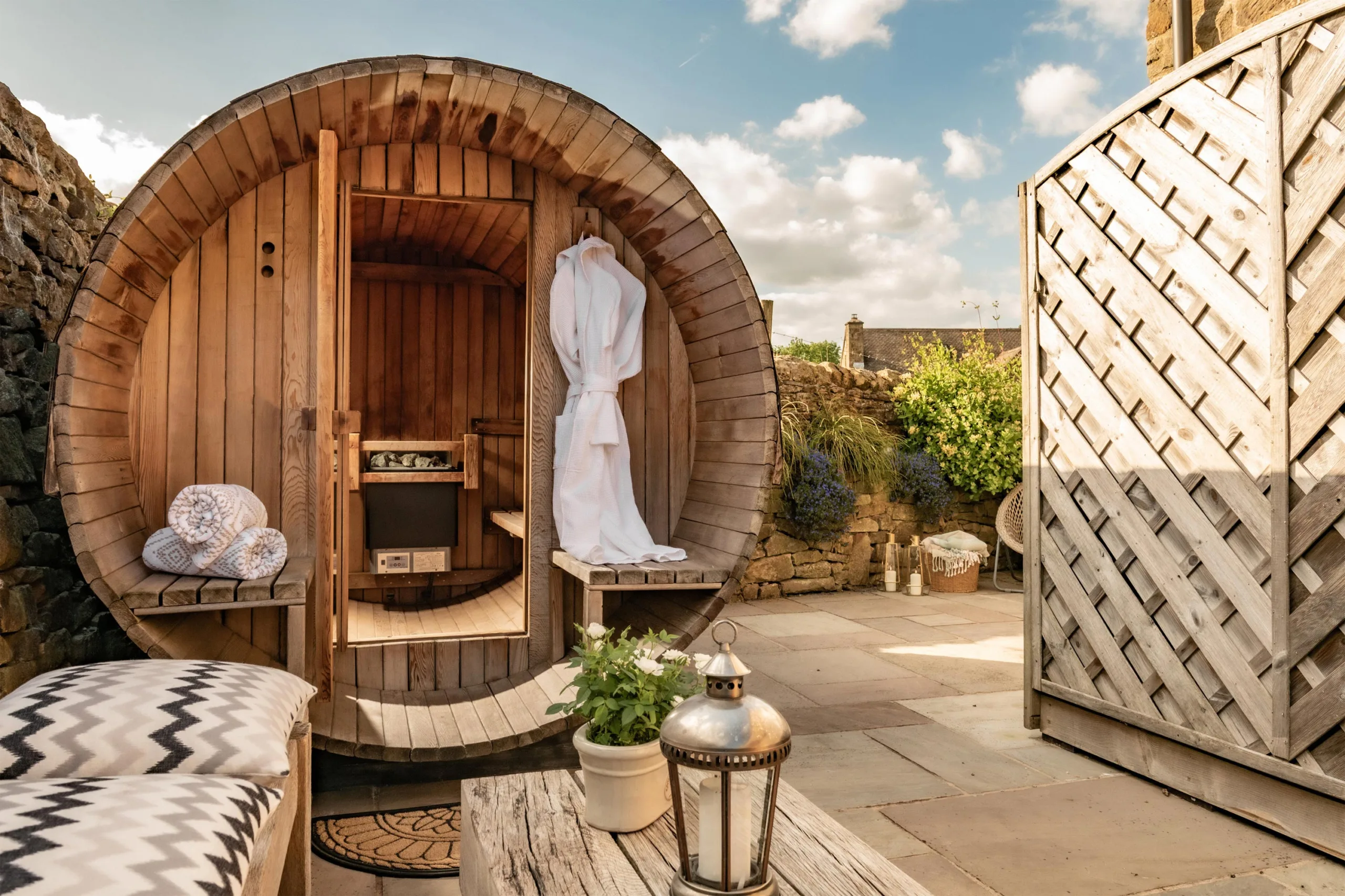 Awarded Five Star GOLD from Quality in Tourism, Honeysuckle Cottage is a beautiful boutique self catering retreat oozing with style and amazing decor. Perfect for couples looking to escape to a completely unique Five Star cottage complete with private hot-tub and unique barrel sauna. As well as superb facilities and all the mod cons you could wish for there are quaint village views, luxurious furnishings, a bespoke kitchen and a gorgeous bedroom with an amazing en-suite to look forward to. Honeysuckle Cottage offers a luxury relaxing unforgettable stay.
