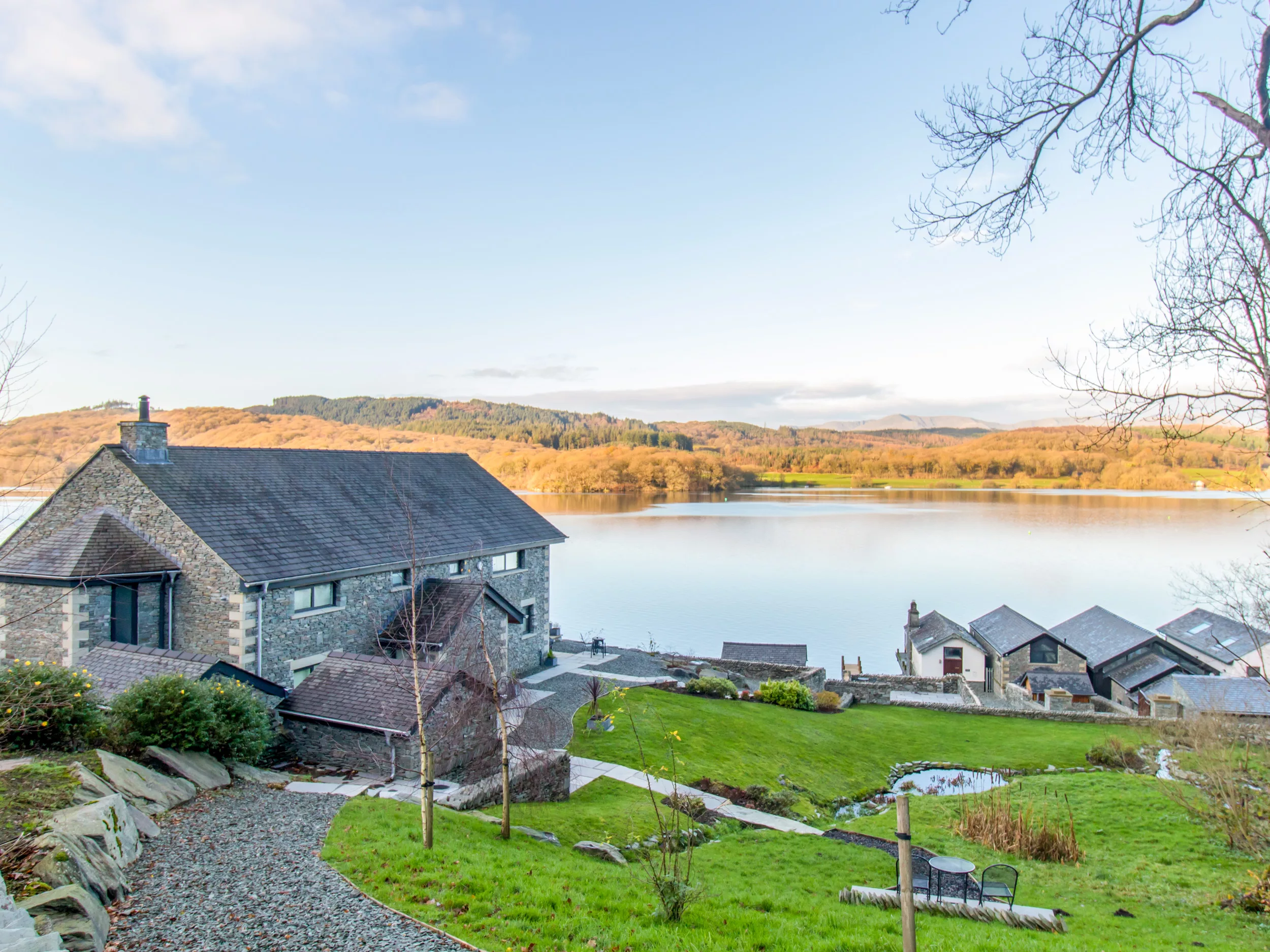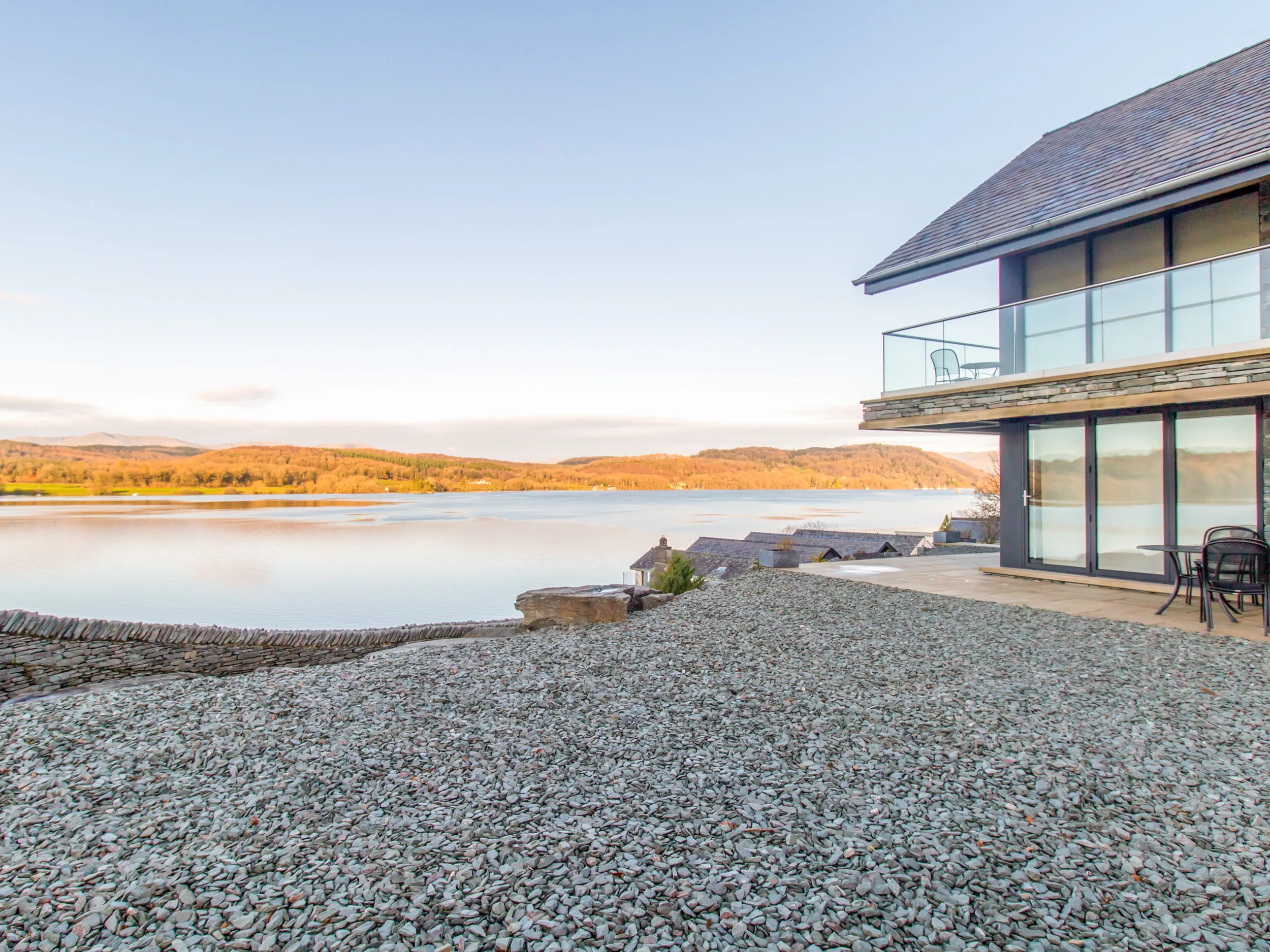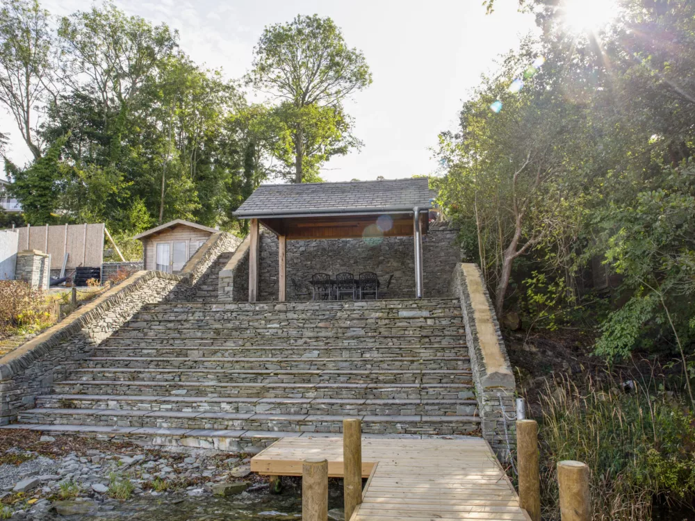 Flanked by ancient woodland where the owners have created a haven for wildlife and kept landscaping to a minimum, the garden sweeps down to the lakeshore benefiting from its own private jetty mooring (boats can only be launched from Bowness-on-Windermere, not from the house), and a small beach overlooked by the large covered outdoor dining area.
