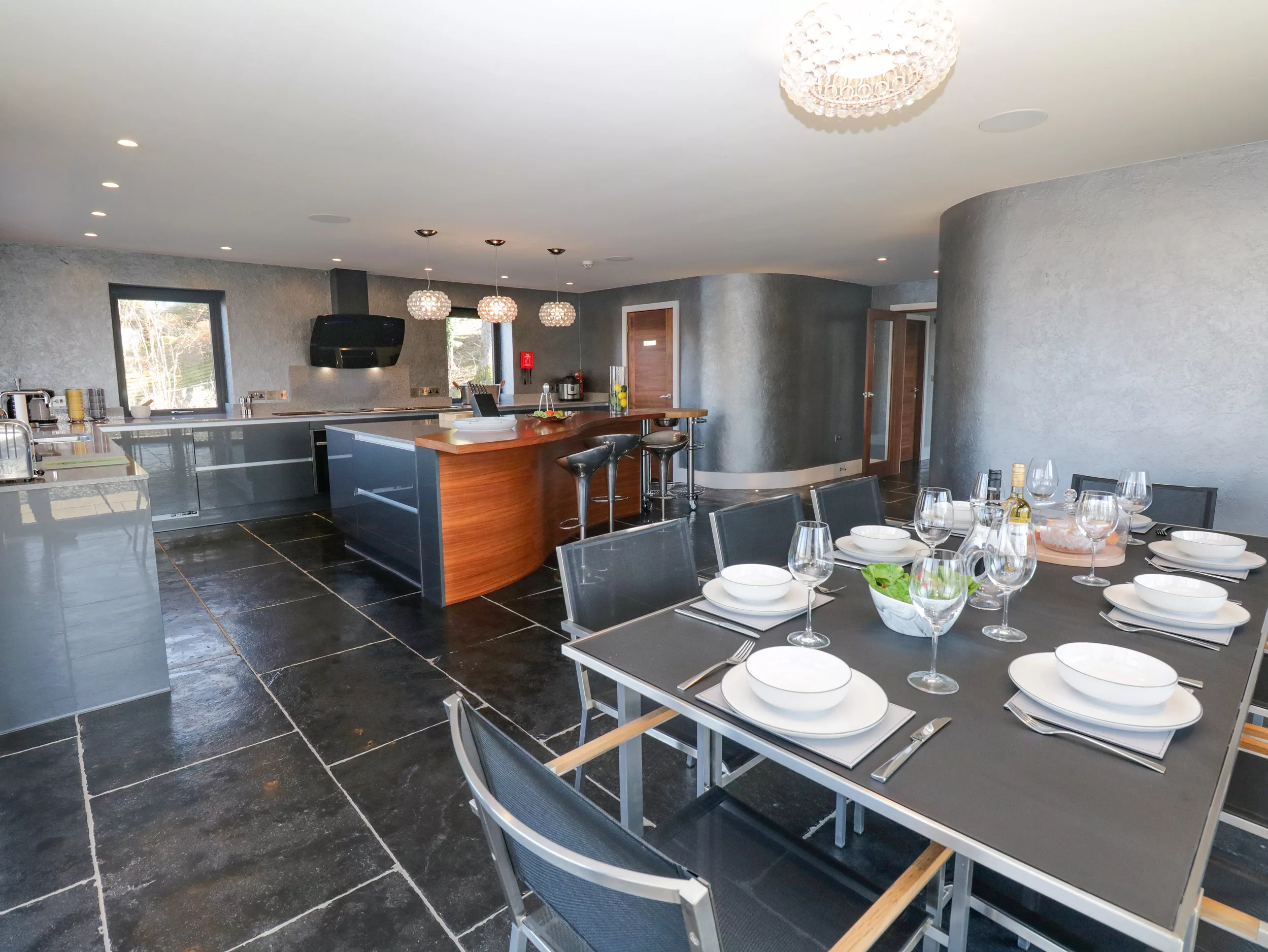 Bi-fold floor to ceiling patio doors in the kitchen and dining space open onto the patio area where you can enjoy some alfresco dining or indulge in a soak in the hot tub with a cold drink in hand.
