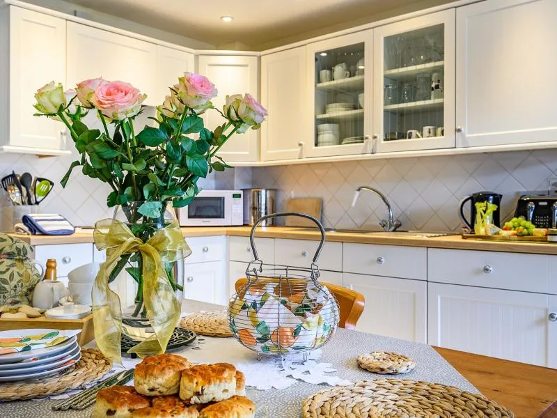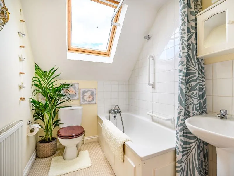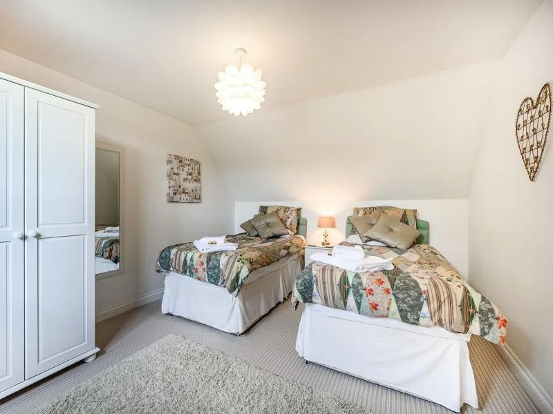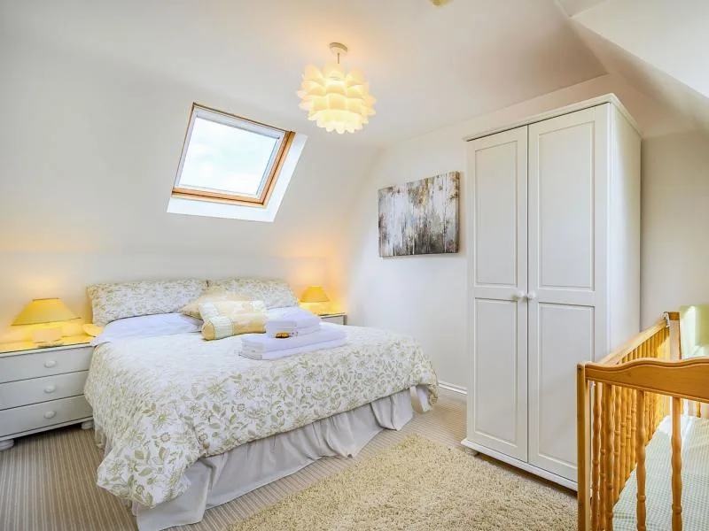 The south-facing cottage is light and welcoming, with countryside views from both the kitchen and lounge. A handy porch provides space for coats and boots, leading into a spacious, fully equipped kitchen/diner with seating for four. A separate utility room houses a washing machine and tumble dryer. The cosy lounge features comfortable seating, a TV and DVD player, with patio doors opening onto an enclosed seating area overlooking the countryside.