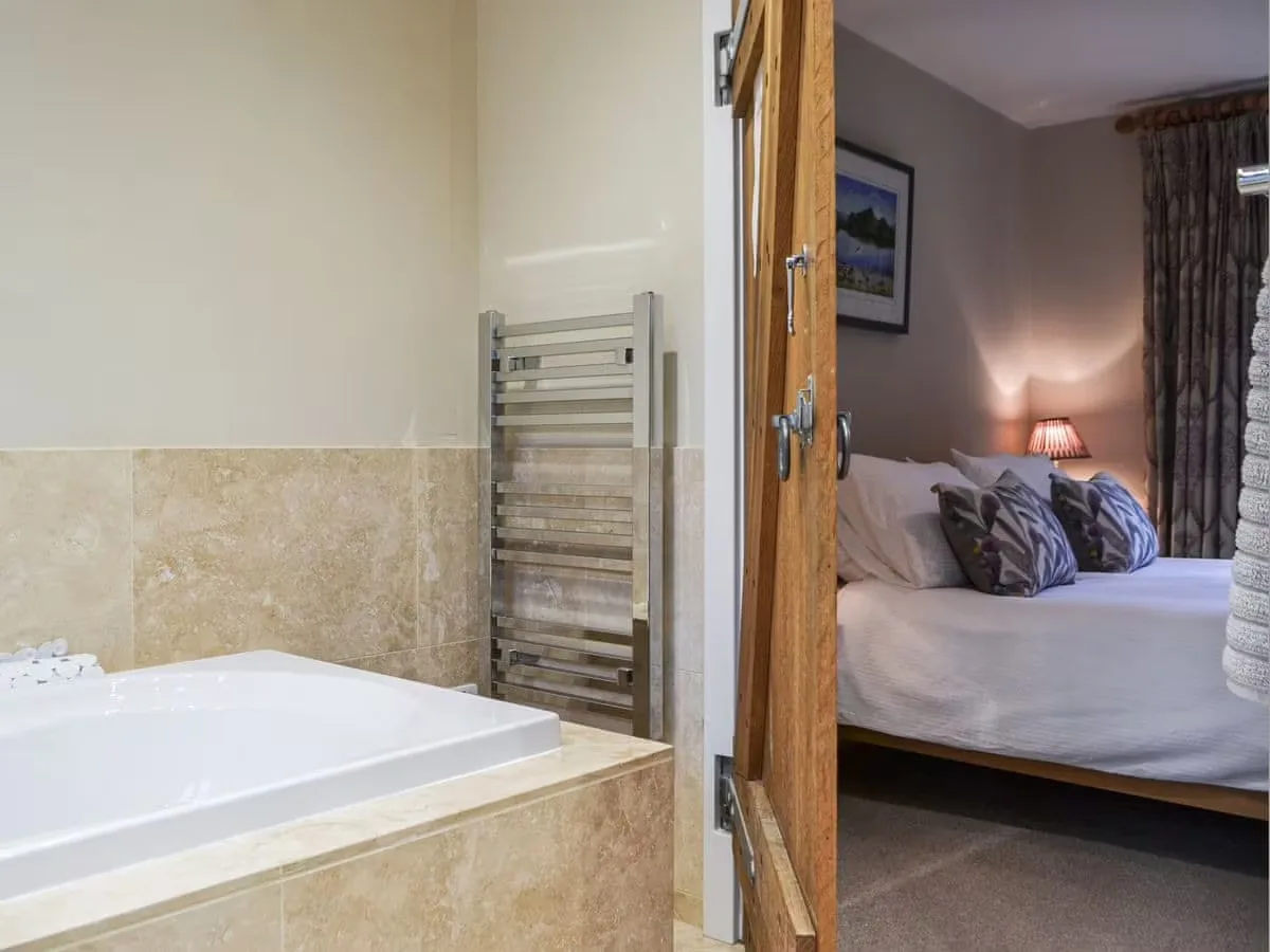 Sleeping up to six guests across three bedrooms, the cottage offers flexible and comfortable accommodation. On the ground floor are two double bedrooms, one with direct access to the family bathroom featuring both a bath and separate shower. One of these rooms can be made up as a twin on request. Upstairs, a charming twin bedroom enjoys its own fully fitted en suite shower room, ideal for families or friends sharing.