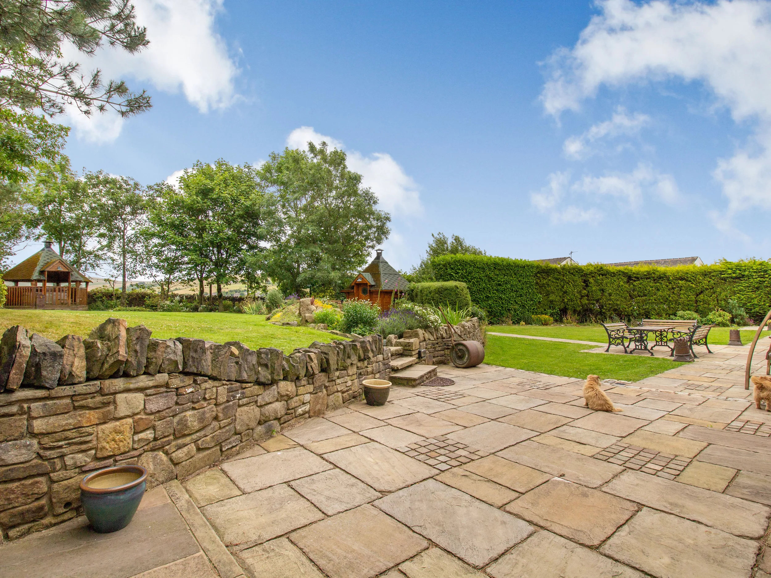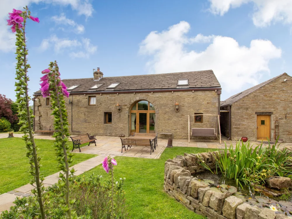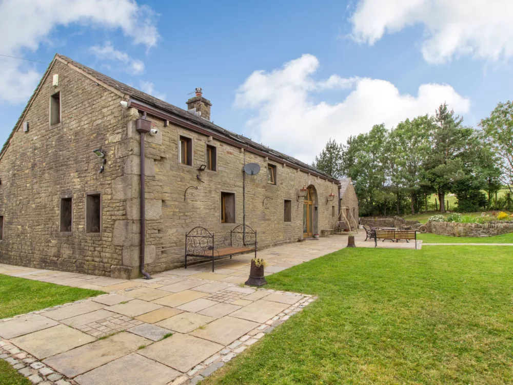 Enveloped by the rural countryside of Greater Manchester is Rough Bank Barn, offering an outstanding self-catering experience to this peaceful part of the county, which lies on the edges on the Peak District National Park. This superb barn conversion is an exceptional find for large groups of families, friends, avid ramblers and those alike to use as a base to explore the surrounding countryside, as well as for paying a visit to the exciting city of Manchester. After travelling up the single-track road, find plenty of space to park your car and admire the endless open countryside views, before pushing open the front door of the stone-built property to reveal the large open-plan living room. In here, exposed beams and vaulted ceilings frame this perfectly portioned room; the huge floor-to-ceiling windows are a striking element, as is the woodburning stove set within a traditional surround. Cosy up after a bracing day walking on the plush sofas to tune into the TV, with the fire setting the ambiance and filling the room with a gentle warmth or gather at the dining table to relish in the company of your loved ones over a home-cooked meal and an accompanying tipple. Discover the well-equipped kitchen to the opposite end of the room, where contemporary tiles lie beneath a traditional AGA, which takes centre stage before all of the other quality appliances that are on hand for catering your own meals and snacks. Working in synergy with the kitchen is the handy utility room, housing a freezer and laundry equipment, as well as plenty of preparation space to keep the kitchen clutter free for the chef of the group, whilst they are cooking up a storm. At this end of the property, a staircase takes you to a super king-size double bedroom, which boasts large wardrobe storage, whilst back on the ground floor are a further three bedrooms, comprising of two super king-size bedrooms, and a king-size double bedroom, each one boasting windows out to the garden and an elegant décor to complement. Concluding the ground floor is a sleek shower room and a deluxe bathroom, featuring a Jacuzzi bath. The master suite can be found on the first floor, where quality linens drape across the sumptuous double bed and it has a private en-suite bathroom, containing a wall-mounted TV, a luxurious Jacuzzi bath and a separate walk-in shower, whilst the final bedroom of the property boasts an impressive king-size bed, where sleep is sure to come easy. At Rough Bank Barn, the garden has been designed as an extension of the house itself, with lush green lawn areas for children to play and your canine companion to meander, whilst you kick back on the sun loungers to soak up the sunshine or dine alfresco on the patio area. Continuing to impress, within the garden there is a barbecue hut, where you can light up the fire and huddle inside to relish in this unique experience before savouring a moment of relaxation by dipping into the hot tub, where the countryside views continue to captivate. If you can tear yourself away from this wonderful retreat, venture into the nearby village of Newhey, where you will find a plethora of amenities, ranging from supermarkets, pubs and an array of eateries to suit all palates and pockets! Alternatively, travel slightly further afield to the large town of Rochdale, home to more amenities or to the city of Manchester, which is just sixteen and a half miles away and is easily accessible with a tram stop in the village to get you there, where you will find more places to eat and drink, as well as the magnificent Manchester Art Gallery, the People’s History Museum and the imposing thirteenth century Manchester Cathedral. Avid ramblers and birdwatchers can visit the nearby Crompton Moor to catch glimpses of the interesting wildlife or take on the challenge of a hike through Fairbrook Naze, boasting unrivalled views of the luscious green landscapes. Within immediate walking distance and with accessible paths takes you to a selection of reservoirs to enjoy including Ogden, Kitcliffe, Rooden, Norman Hill, Piethorn and Hanging Lees. Further walking opportunities can be found within the nearby Peak District National Park, whilst the local attractions of the Hollingworth Lake Visitor Centre and the National Trust owned Marsden Moor Estate, will delight a family of all ages. Bring your loved ones to Rough Bank Barn to share an exceptional holiday.