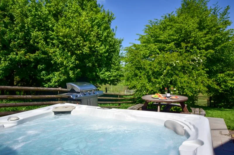 Outside, a rear patio offers a hot tub, dining furniture and BBQ, perfect for enjoying the beautiful rural views. A sloping lawn leads to woodland grounds with ponds and a fenced river to explore. Off-road parking is available for two cars, making this an idyllic countryside retreat.