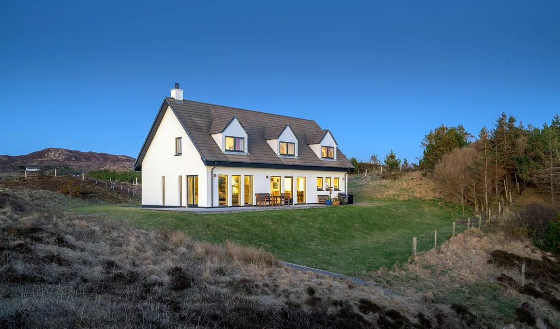 There is a very spacious kitchen / diner and a large sitting room which both open onto wide decking, with views across the beach, loch and sea. There is a very large enclosed garden which has various seating areas ideal for wildlife viewing. This unique house and location will ensure a memorable holiday.