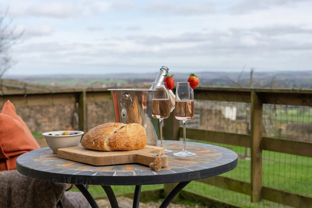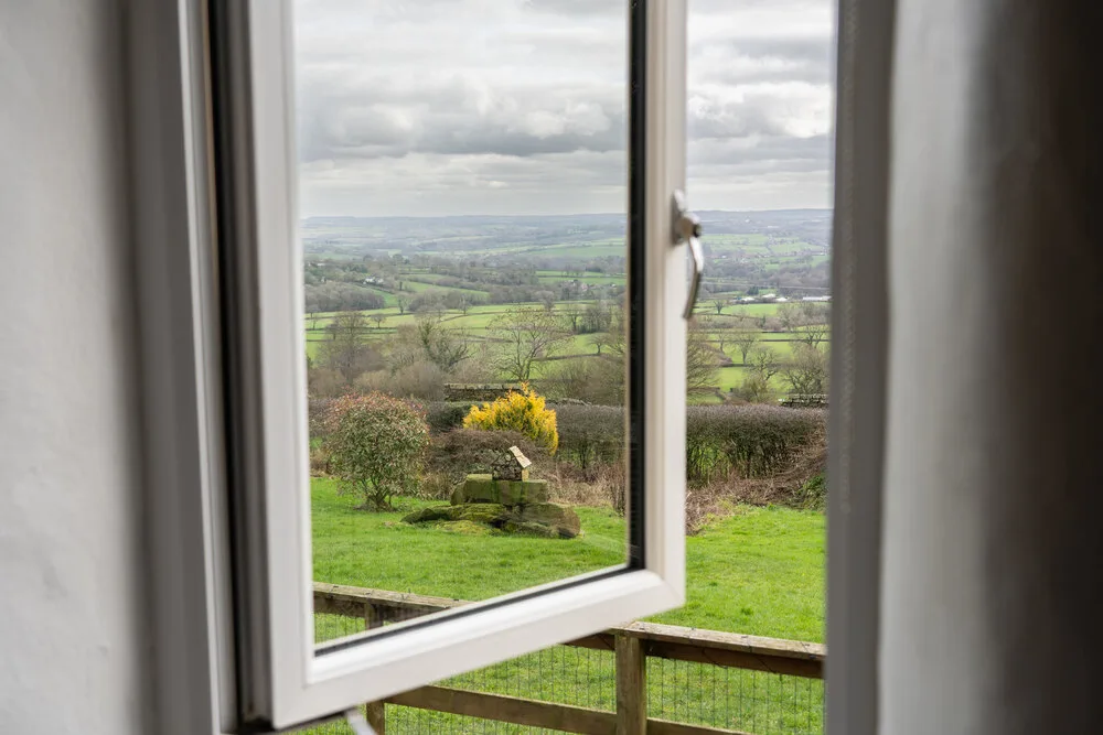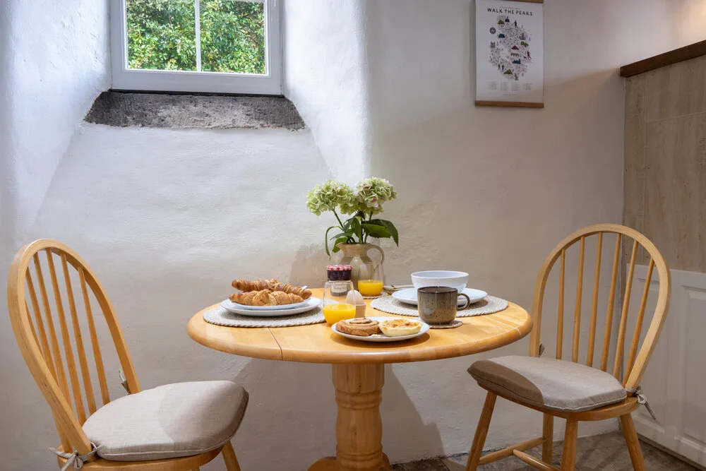 Outside, a pretty patio looks out across a wildflower meadow with far-reaching views over the Amber Valley. It’s a delightful spot for a slow morning coffee, or an evening drink as the sun sets across the rolling Derbyshire landscape.