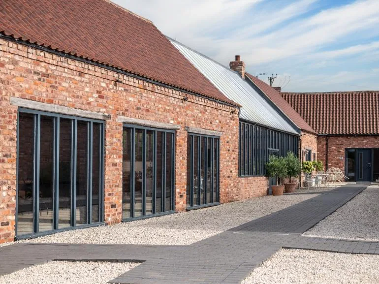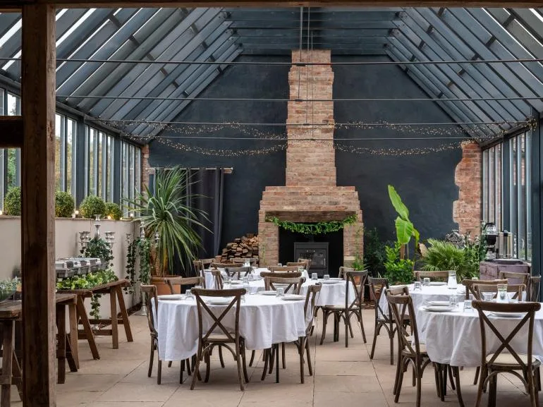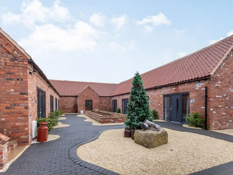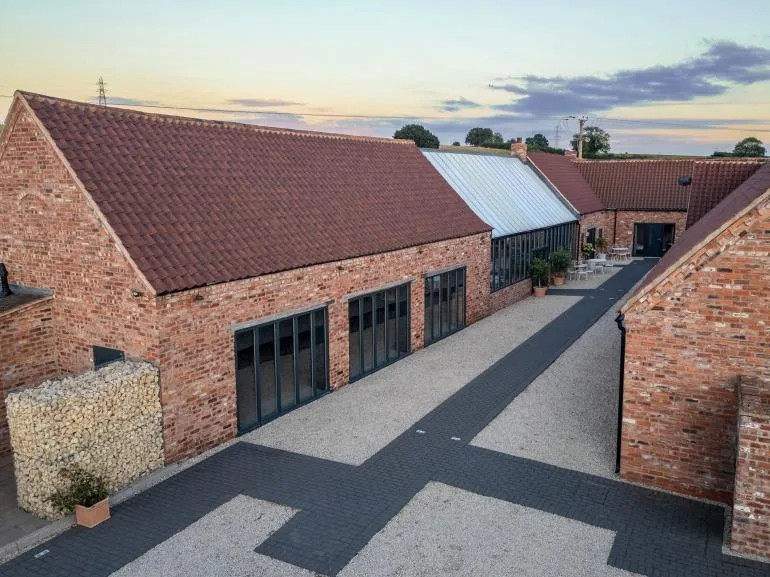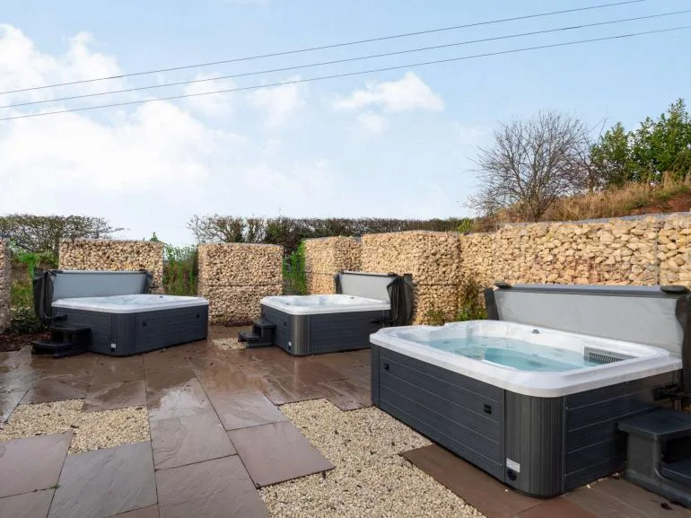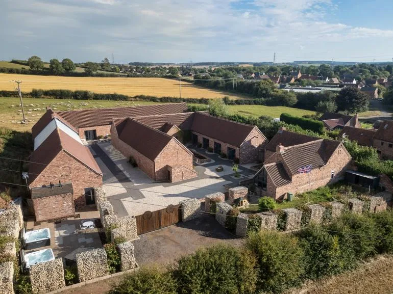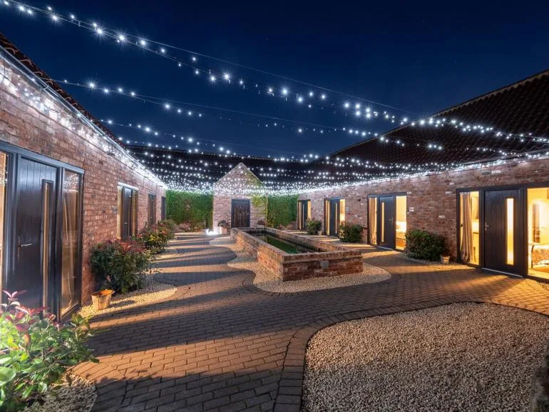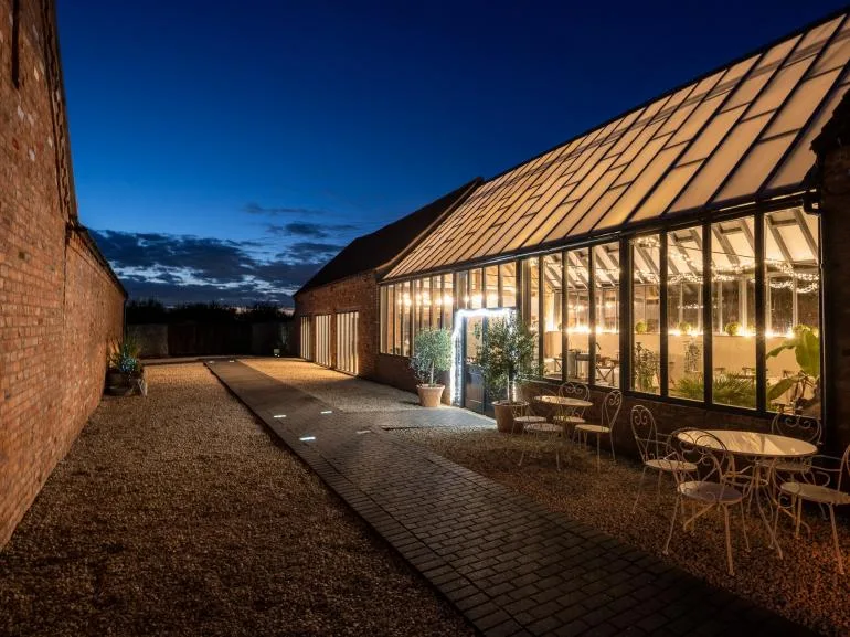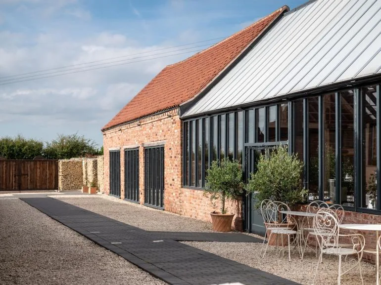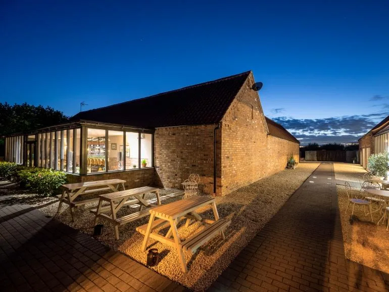 During the warmer months, enjoy the outdoor patio area with ample seating and relaxing hot tubs. There’s a convenient drop-off point near the main entrance, and a designated car park is located a short walk from the barns.