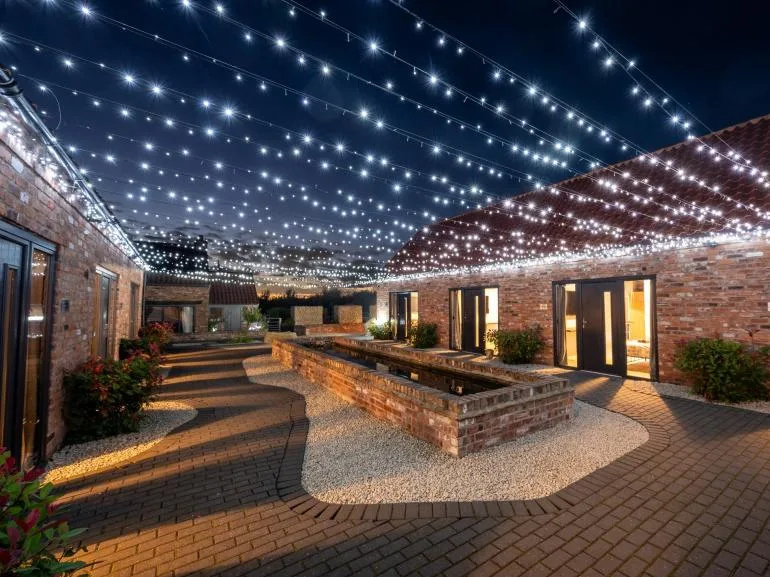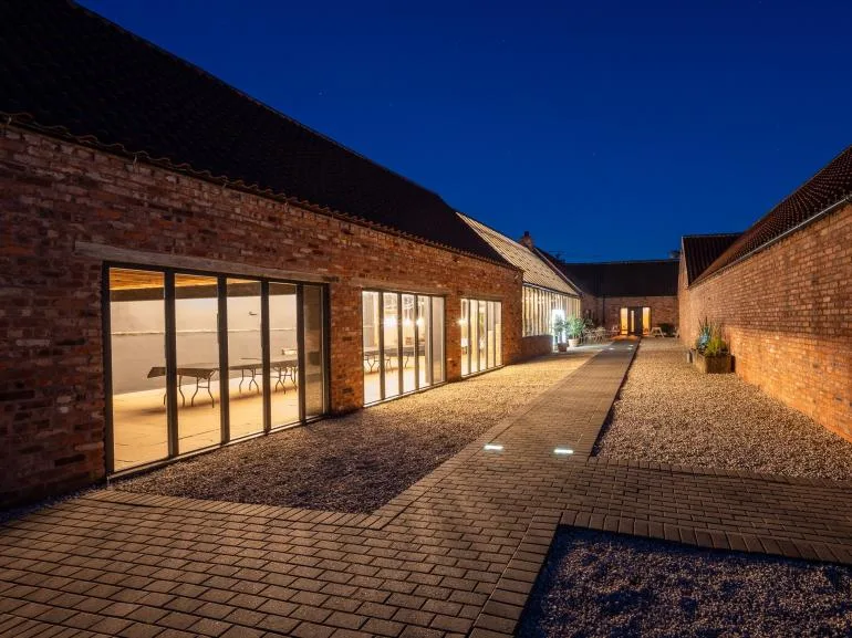 Step out into the courtyard to find the accommodation. There are 9 king-size bedrooms and 4 twin bedrooms, all with en-suite shower rooms and WCs. One master twin also includes a luxurious en-suite with a freestanding bath, separate shower, and WC. Each room offers underfloor heating and a 55” Smart TV for added comfort.
