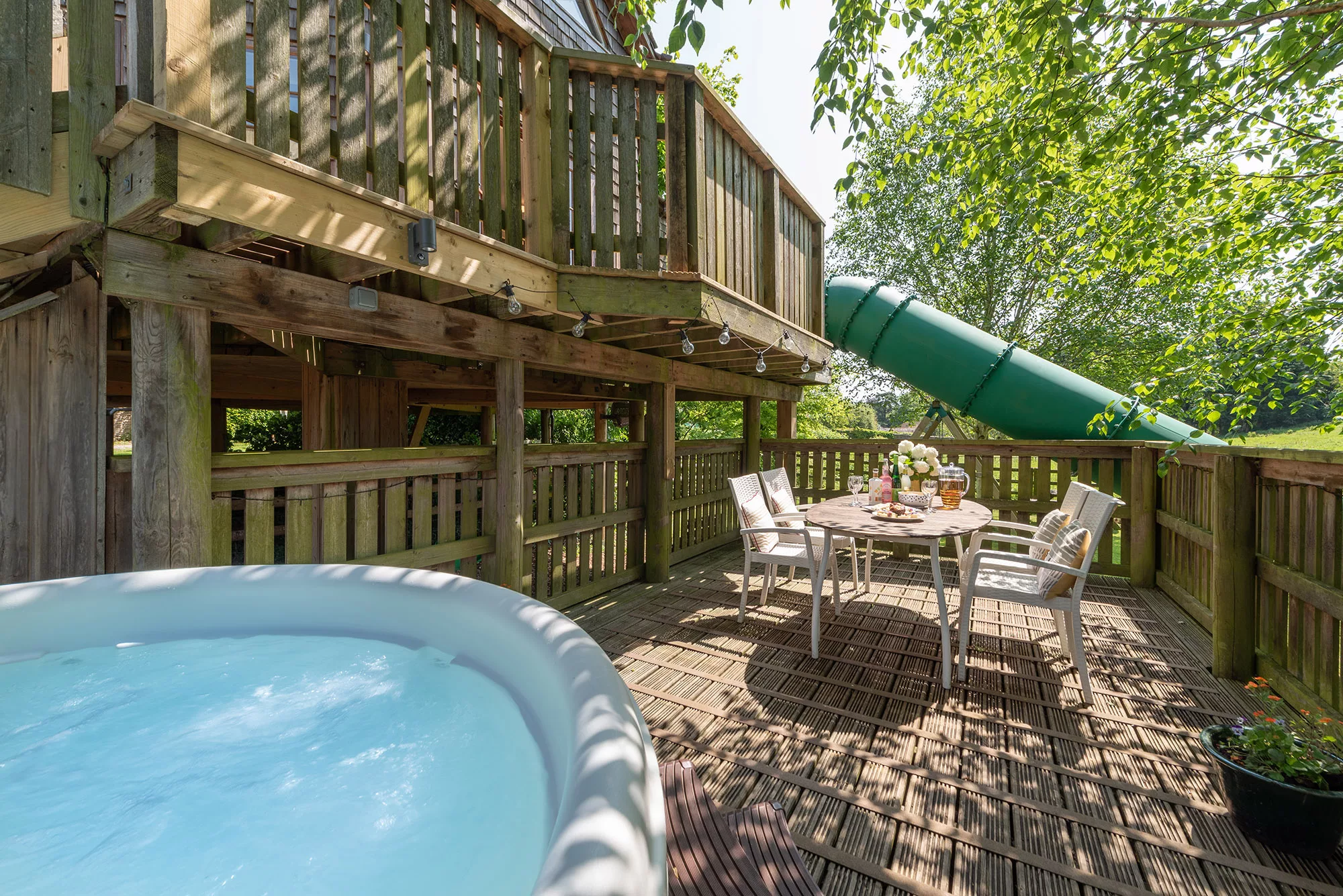 The Treehouse offers you the chance to stay in this totally unique holiday destination close to Exmoor in a delightful part of Somerset. Ideal for a family of five or a couple who require more space this is a stunning treetop location, idyllic outlook and fantastic gardens, the Treehouse is a luxurious five-star holiday Treehouse. As well as the private hot tub, guests staying at the Treehouse have two daily private use slots of an indoor swimming pool on the farm, heated to 30′.