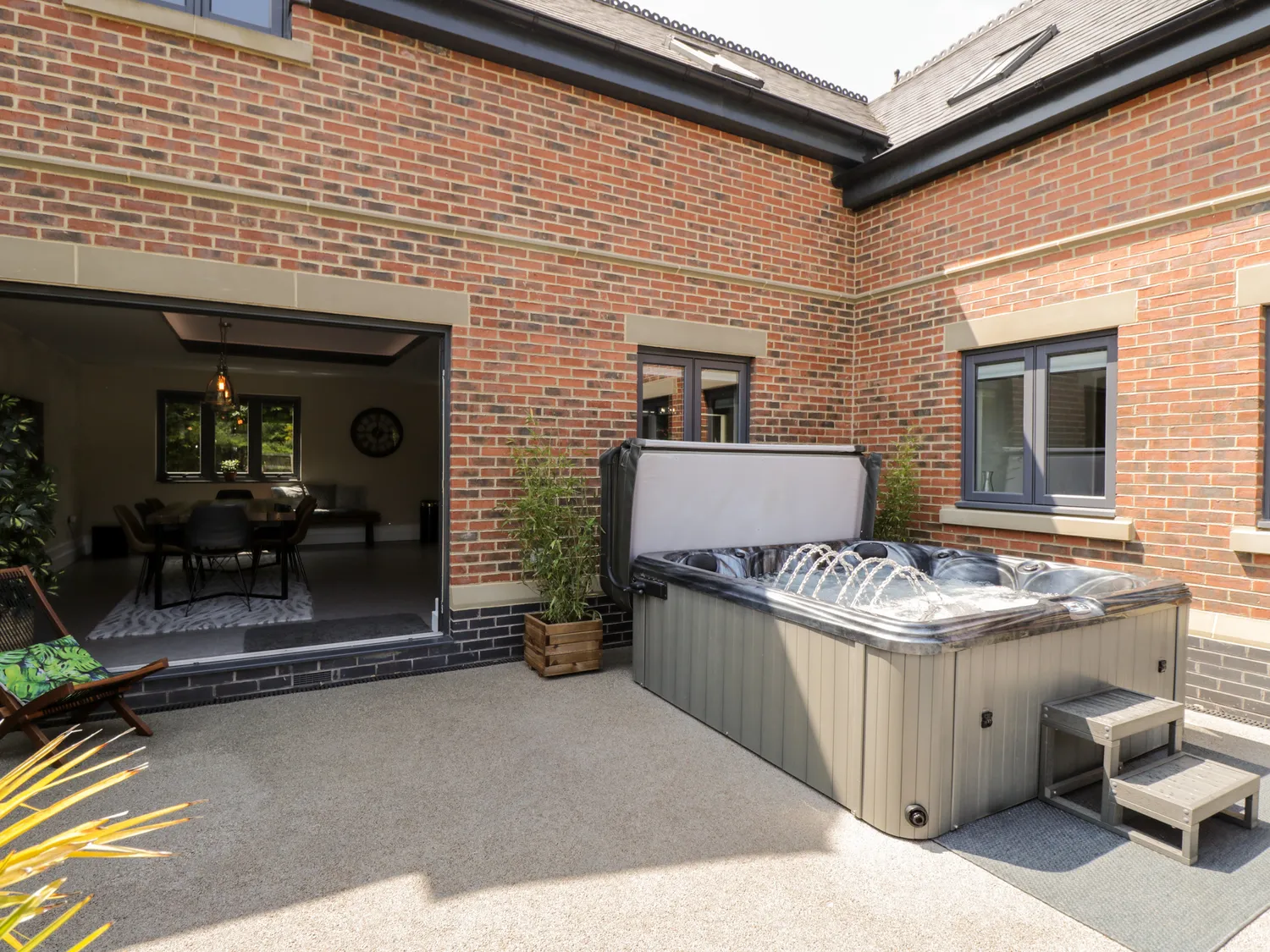Inside, the home offers beautifully designed living spaces, including a sleek, fully equipped kitchen/diner with a central island, large dining table, and Smart TV. Bi-fold doors open onto the garden, perfect for alfresco dining and barbecues in warmer months. Unwind in the cosy sitting room with a woodburning stove, or enjoy movie nights in the impressive private cinema room. Outside, an indulgent hot tub provides the perfect spot to relax under the stars.