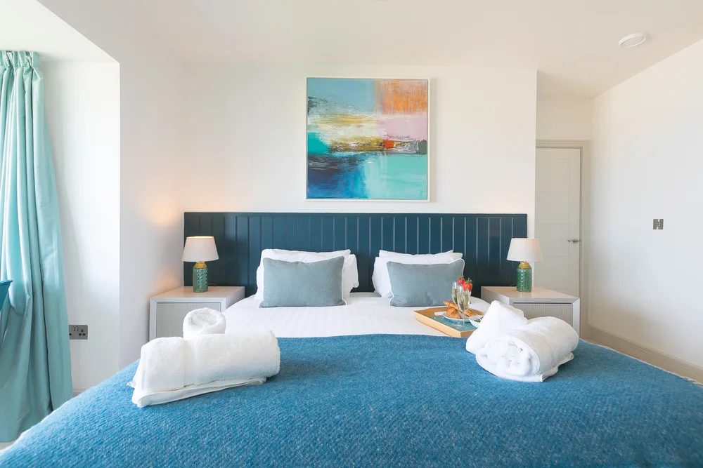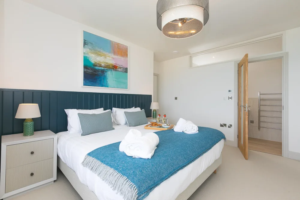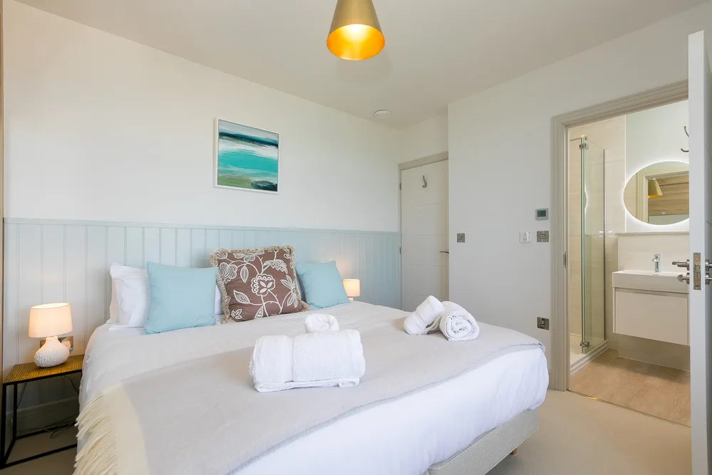 The second bedroom, another beautifully appointed super king bedroom with it’s own en suite, ensuring comfort and space for all guests.