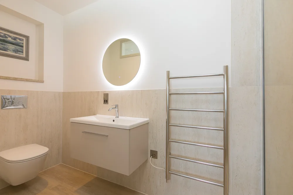 The family bathroom offers a bath and a walk in shower, providing the perfect space for relaxation after a day of exploring.