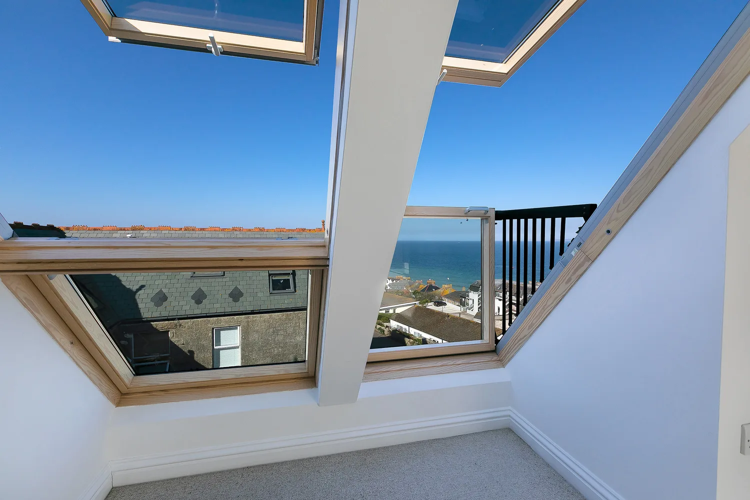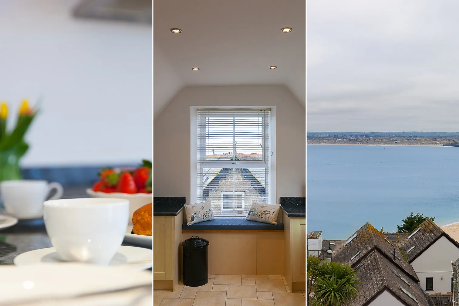 The Panoramic views across Porthminster Beach from this spacious penthouse apartment are simply breath taking. Open the Juliet balcony to make the most of the fabulous views and relax in comfortable surroundings – what more could you need!
