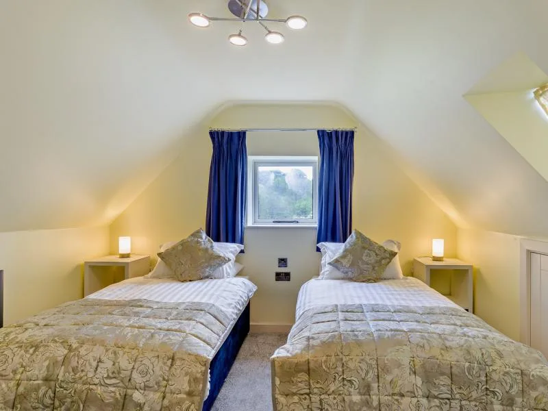 Inside, the property blends characterful cottage features with modern luxury. The ground floor hosts a private sauna and a super-king bedroom with en-suite shower room. Upstairs, the open-plan kitchen/diner forms the social heart of the home, fully equipped for relaxed meals or alfresco dining on the patio. A stylish lounge with sumptuous seating and Smart TV provides the perfect place to unwind. A second super-king bedroom, which can be arranged as a twin, also benefits from an en-suite shower room.