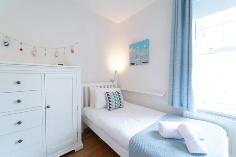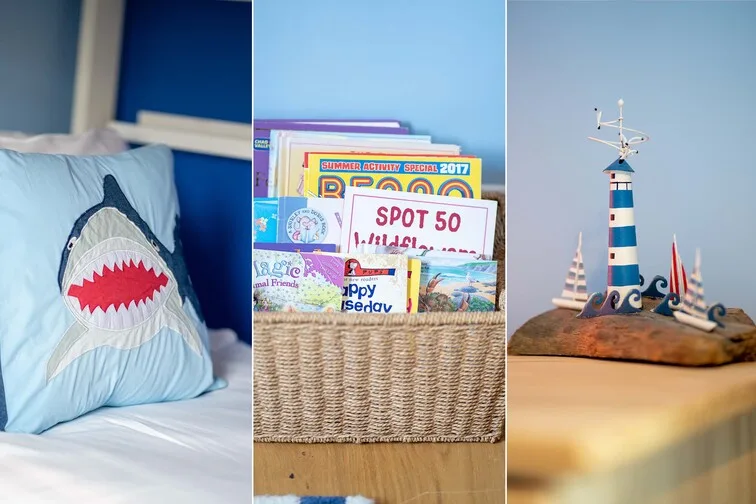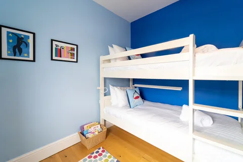 The fourth bedroom is situated on the first floor with bunk beds, storage, and a selection of children’s books to entertain the family at bedtime.