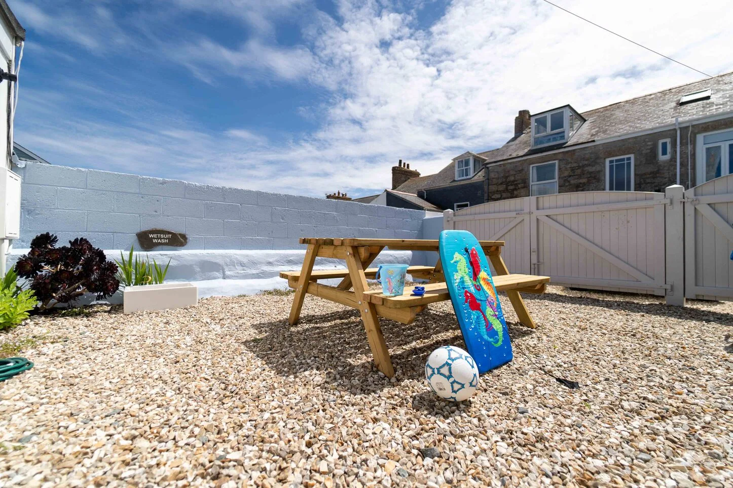 There is a delightful private courtyard with a picnic table at the back of the holiday home fashioning a peaceful haven where you can enjoy a glass of wine, dine al fresco, and enjoy the Cornish sunshine. This area doubles up for parking a second car.